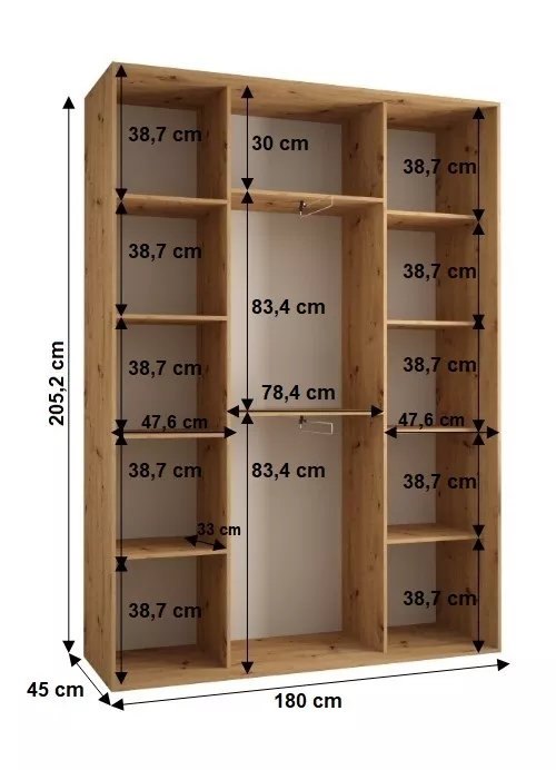Součástí skříně jsou police i 2 výsuvné šatní tyče. Šuplíky do skříně najdete v sekci Doporučujeme přikoupit.