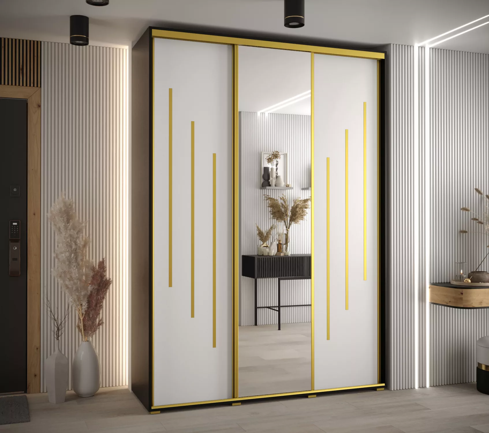 Šatní skříň YVONA 9 - 180/45 cm, černá / bílá / zlatá