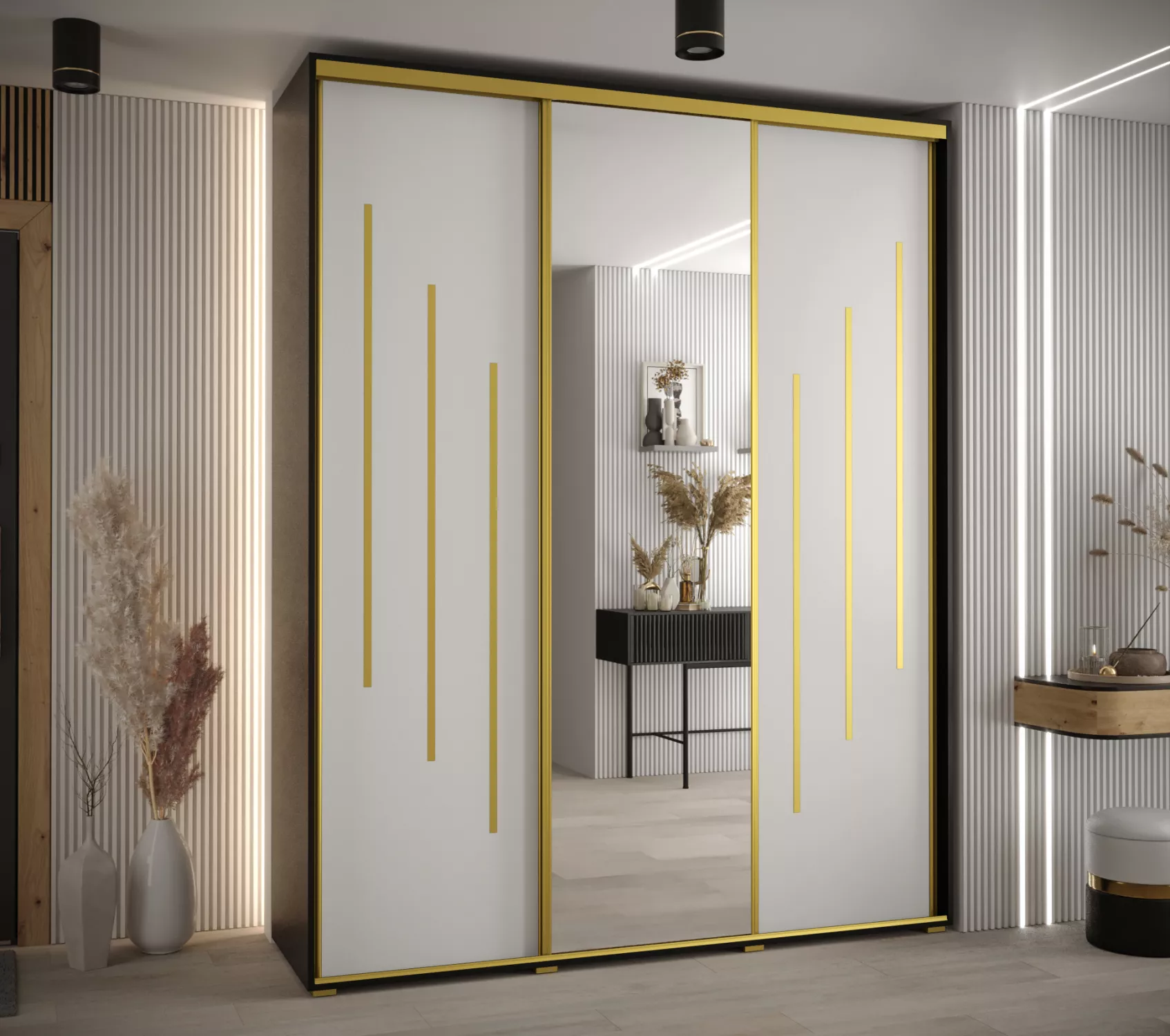 Šatní skříň YVONA 9 - 190/45 cm, černá / bílá / zlatá
