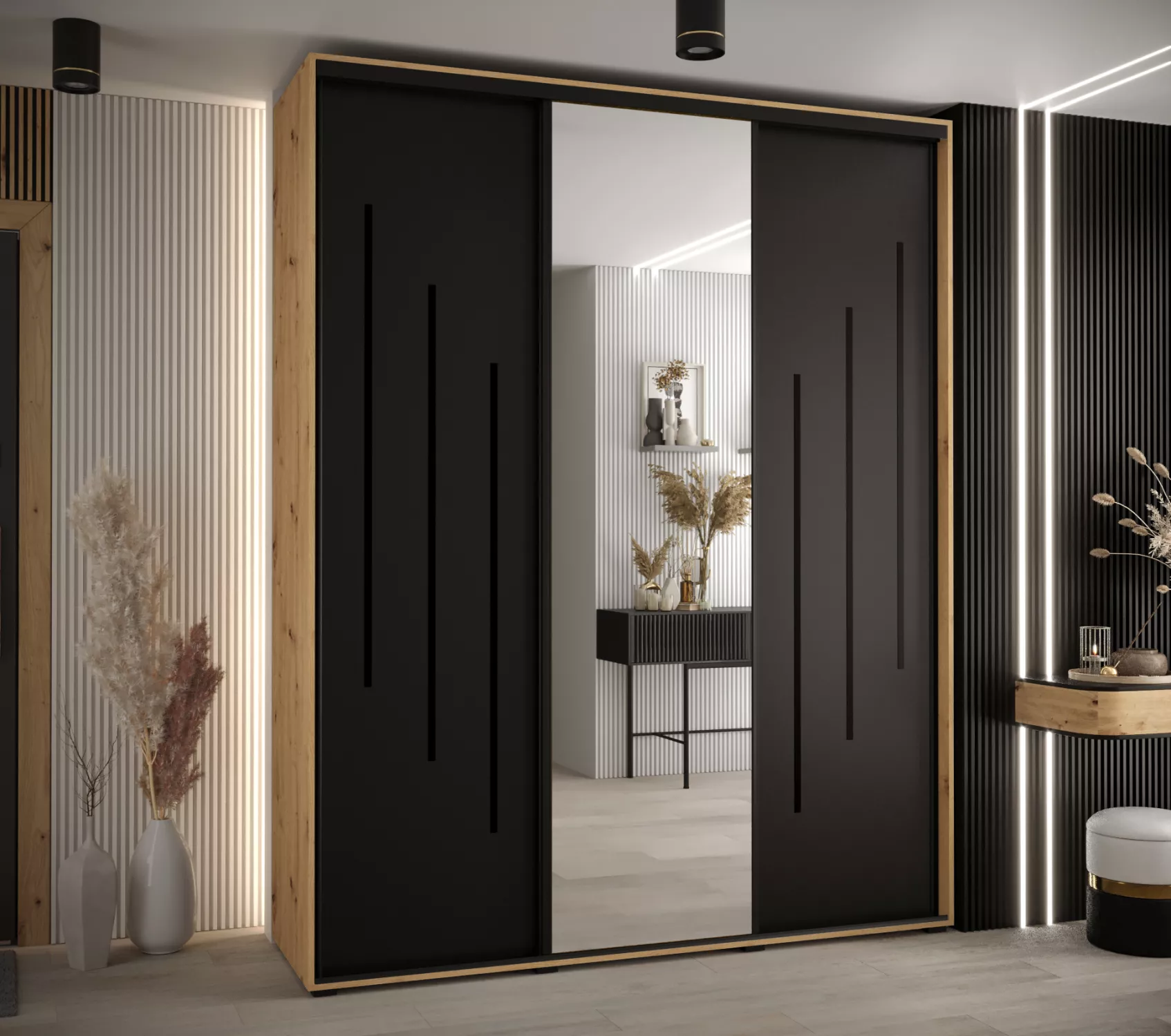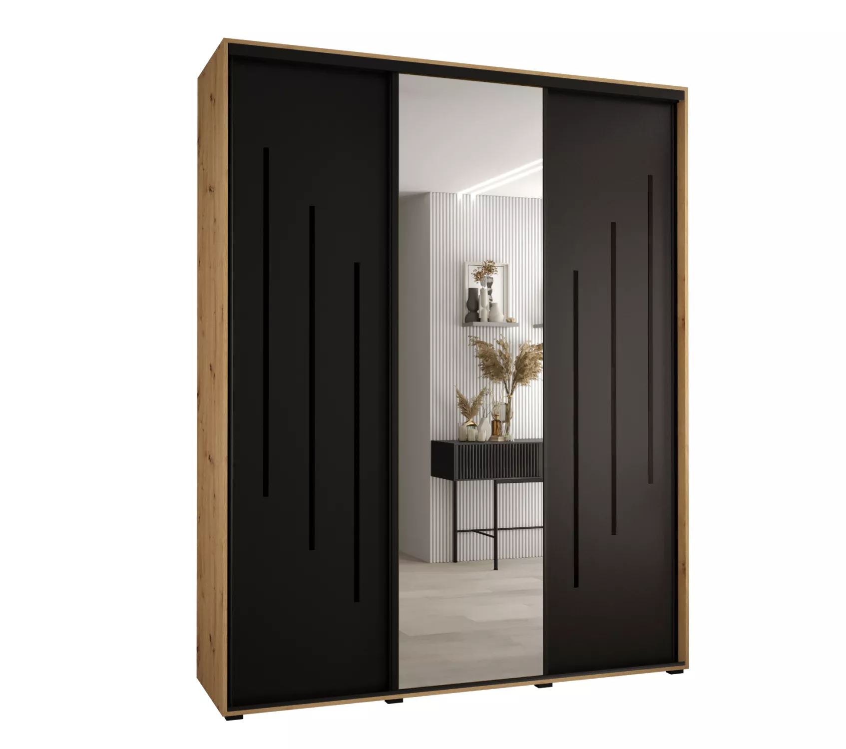 Šatní skříň YVONA 9 - 200/45 cm, dub artisan / černá / černá