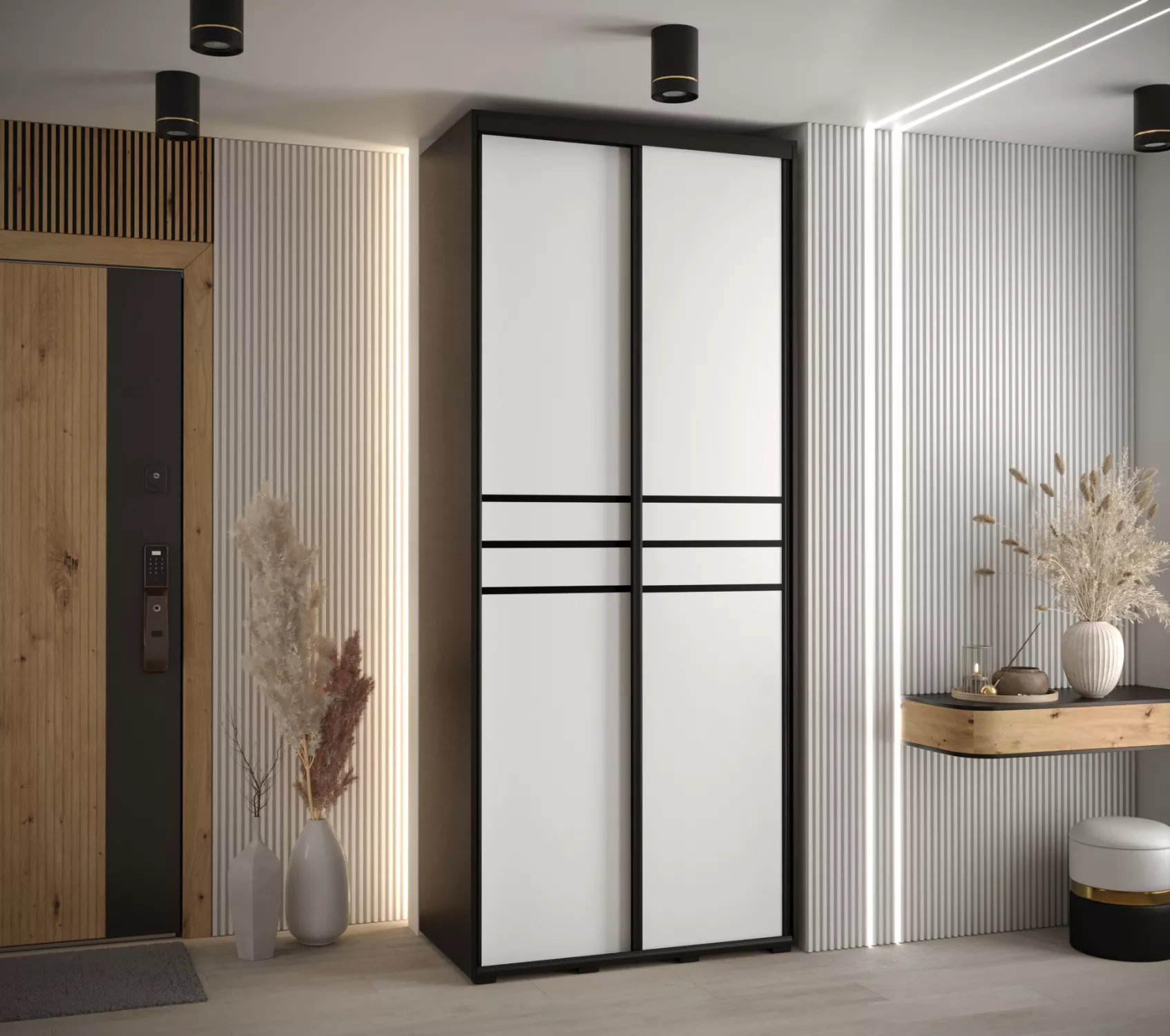 Šatní skříň YVONA 10 - 100/45 cm, černá / bílá / černá