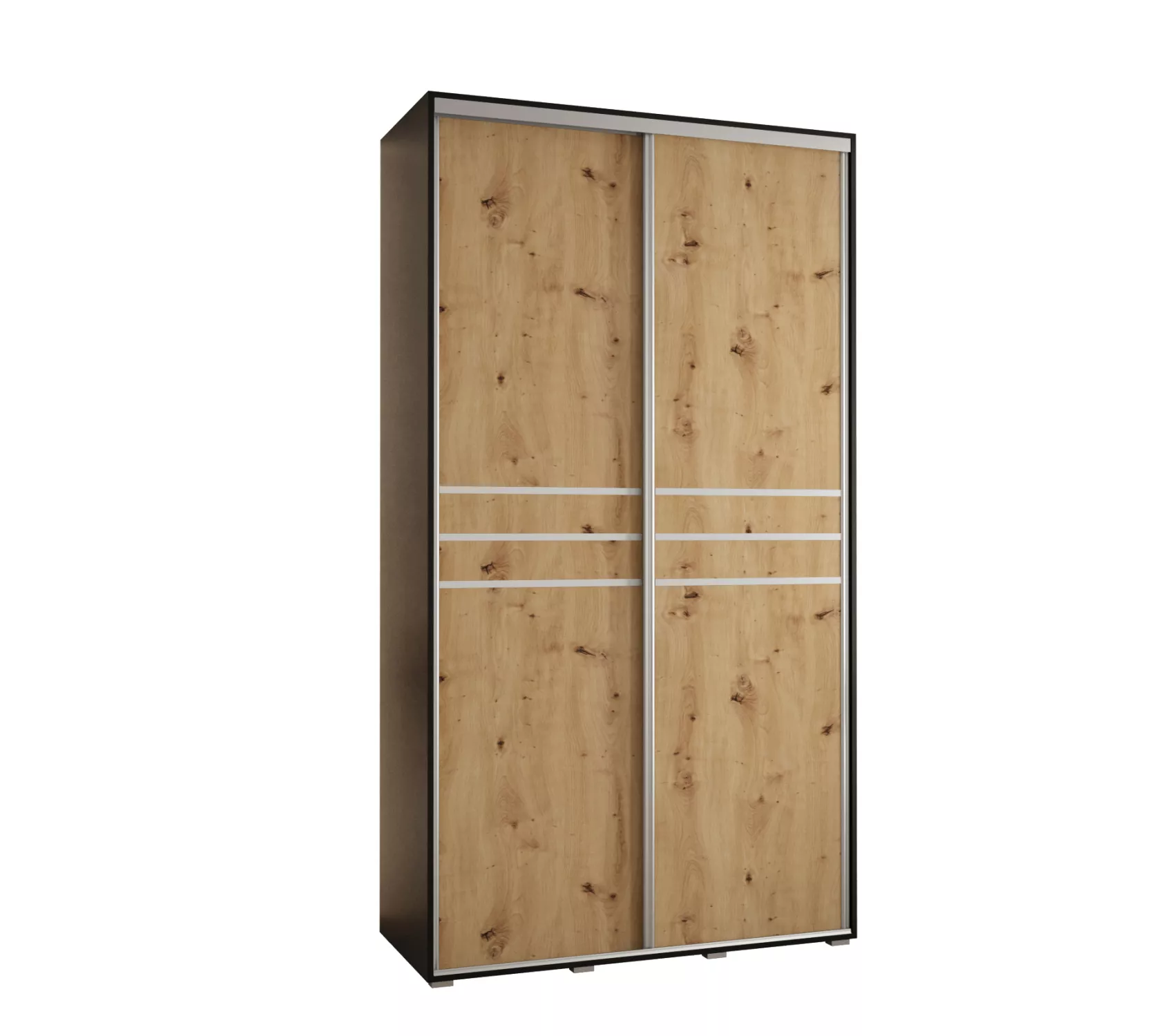 Šatní skříň YVONA 10 - 140/45 cm, černá / dub artisan / stříbrná