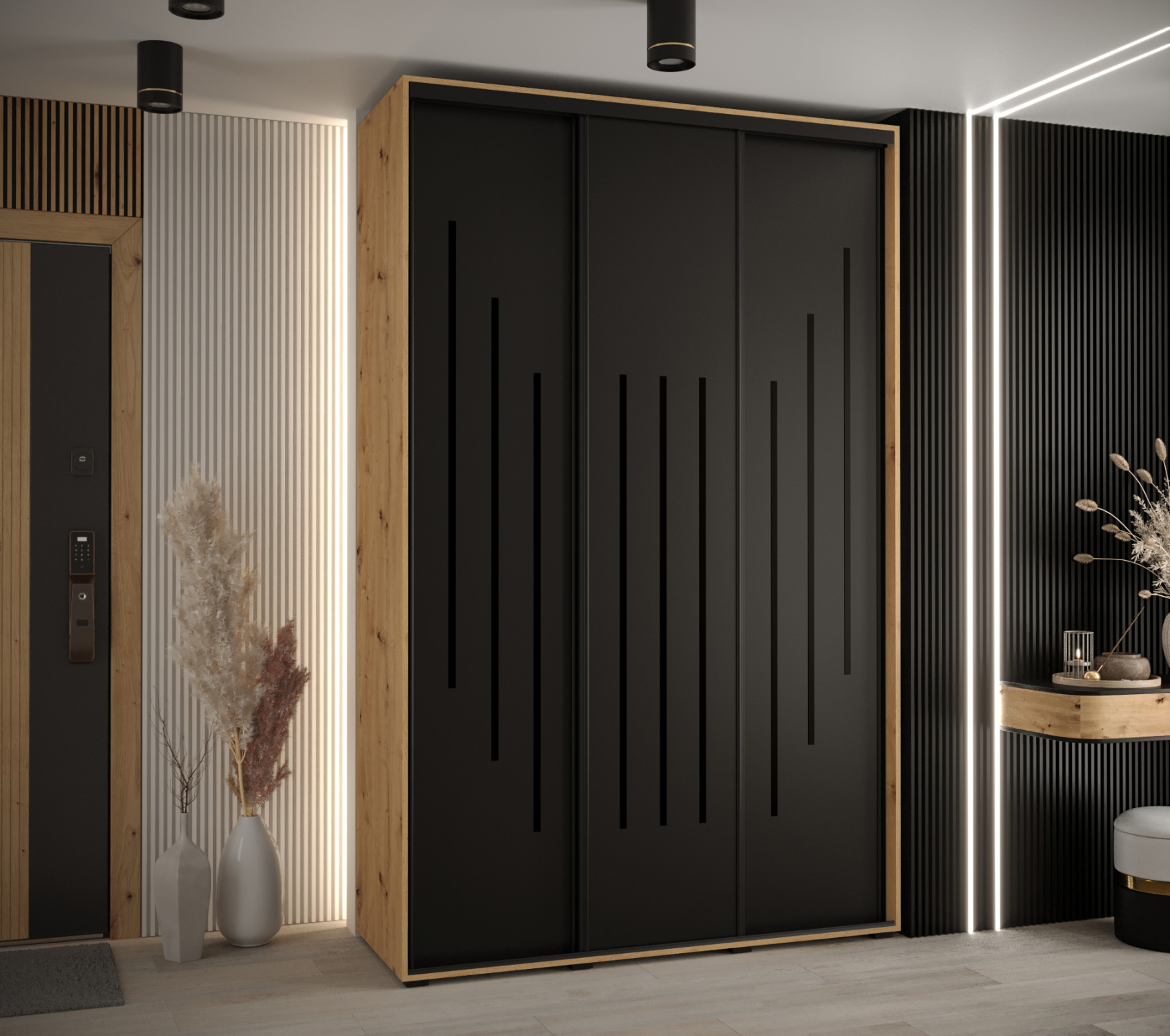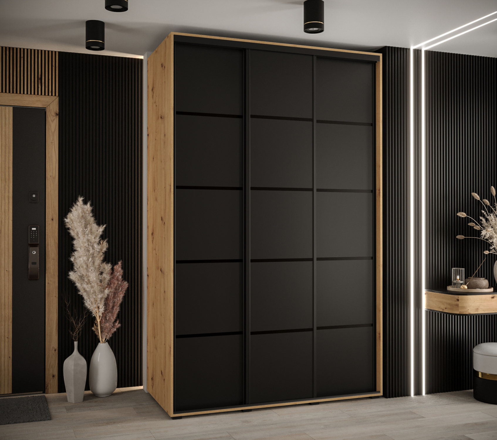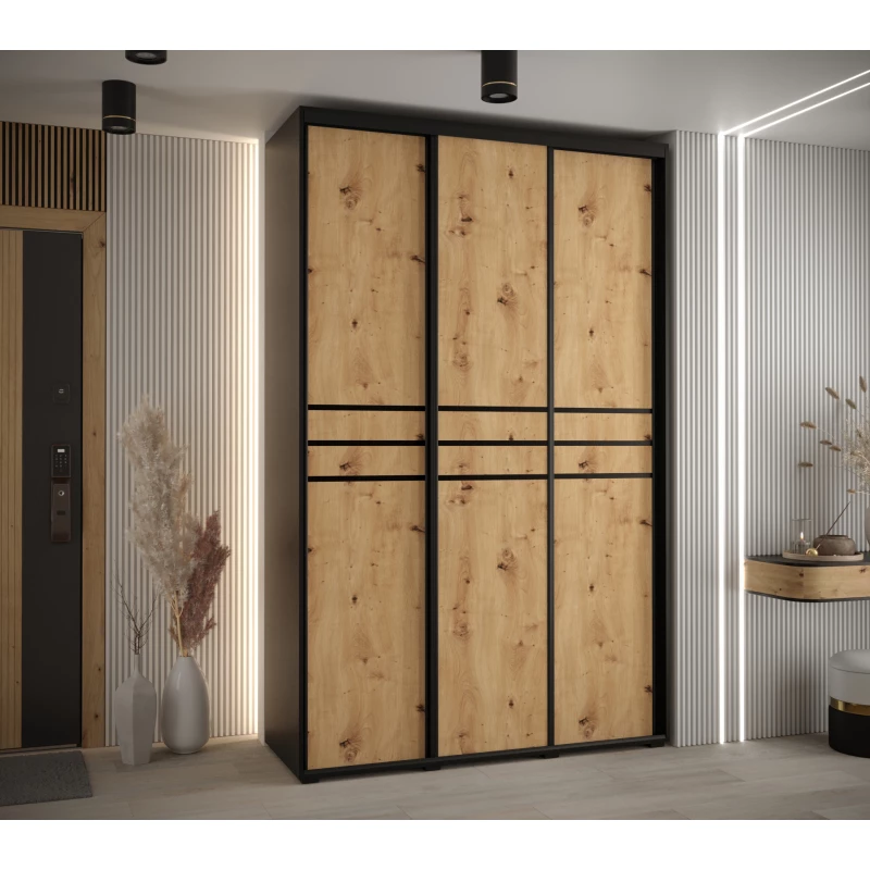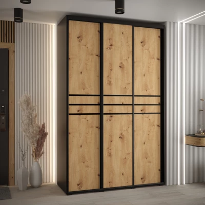 Šatní skříň YVONA 10 - 150/45 cm, černá / dub artisan / černá