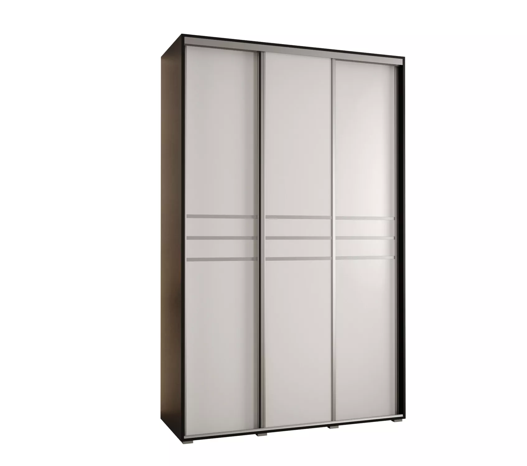 Šatní skříň YVONA 10 - 150/45 cm, černá / bílá / stříbrná
