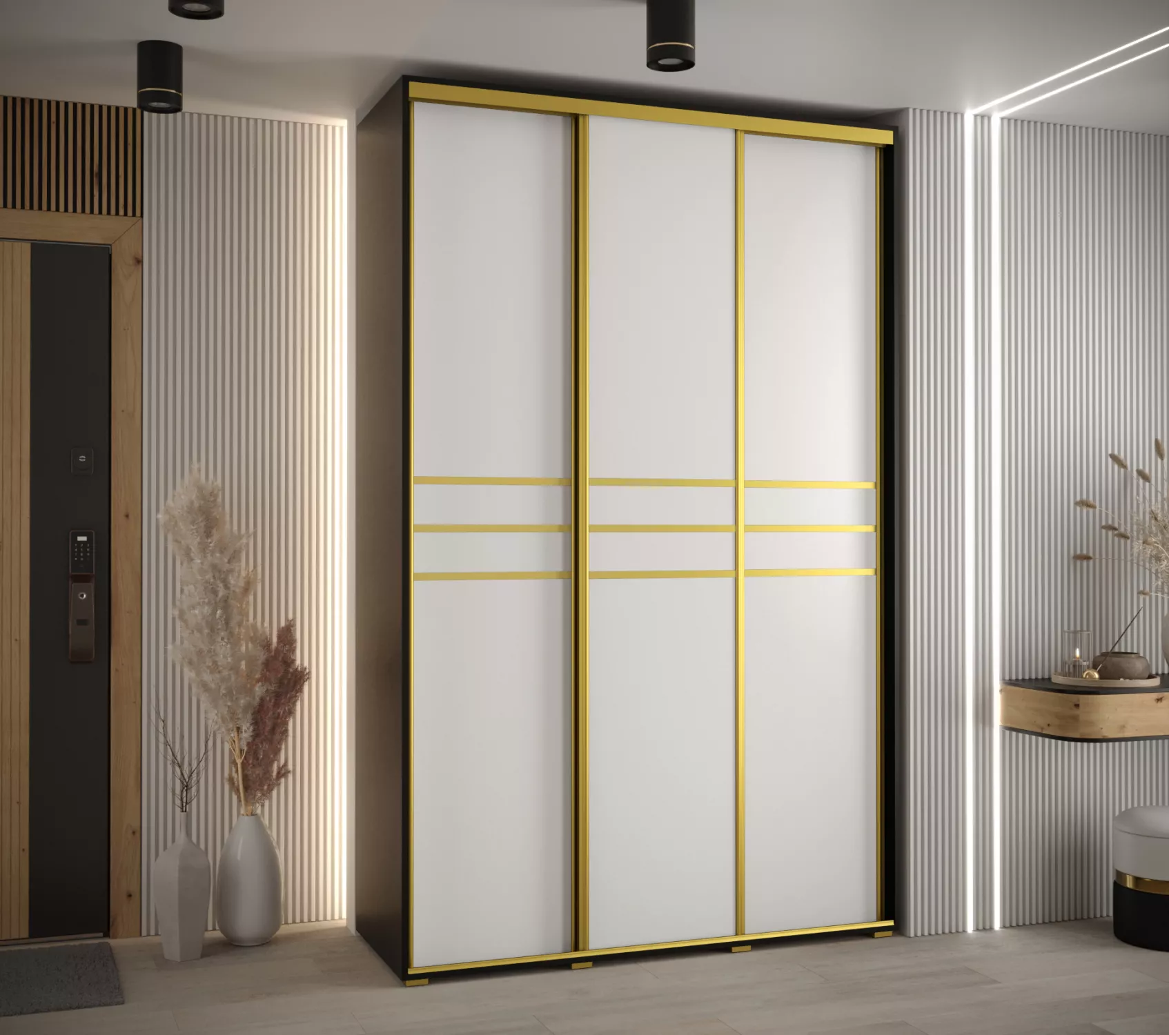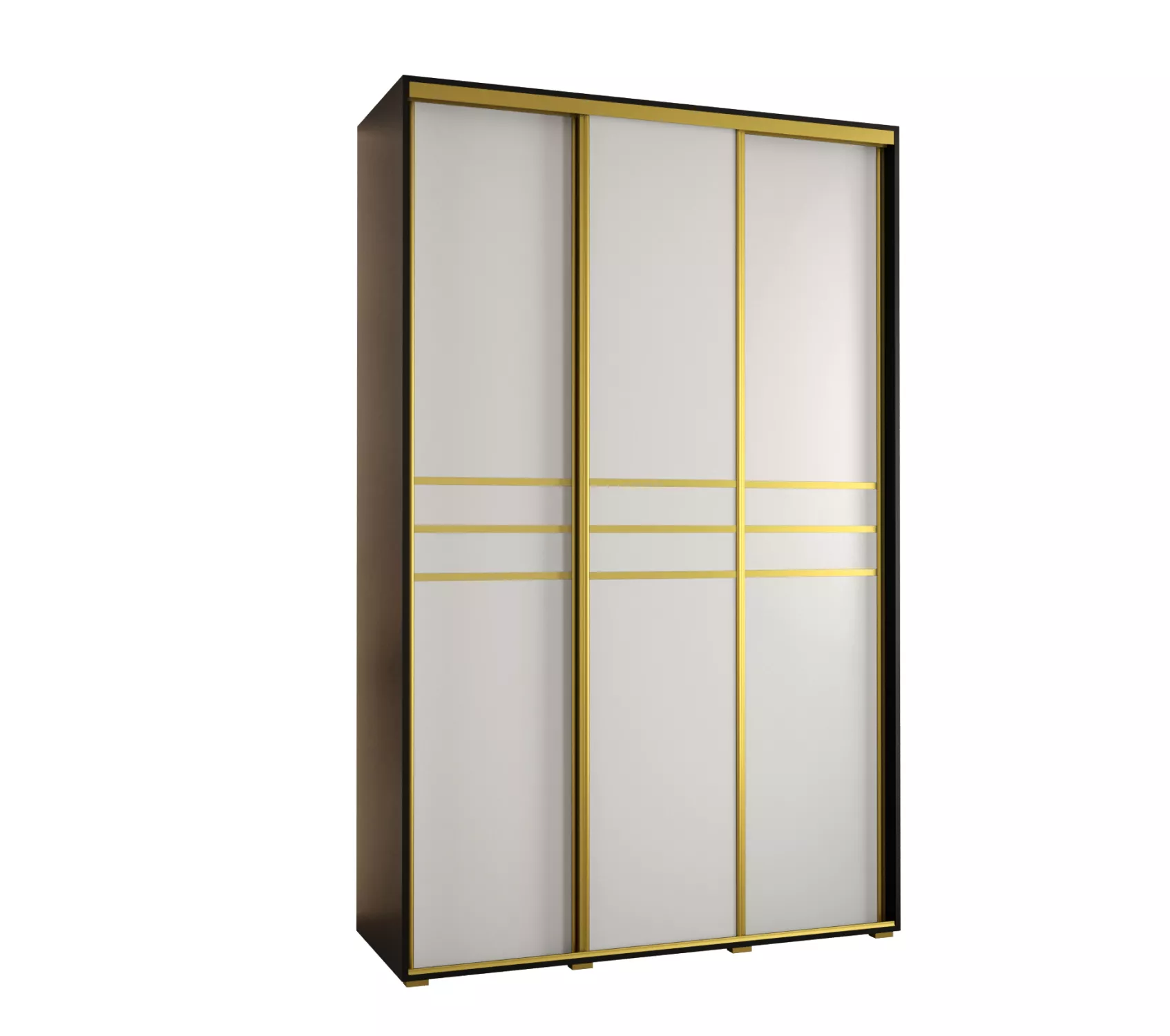 Šatní skříň YVONA 10 - 150/45 cm, černá / bílá / zlatá