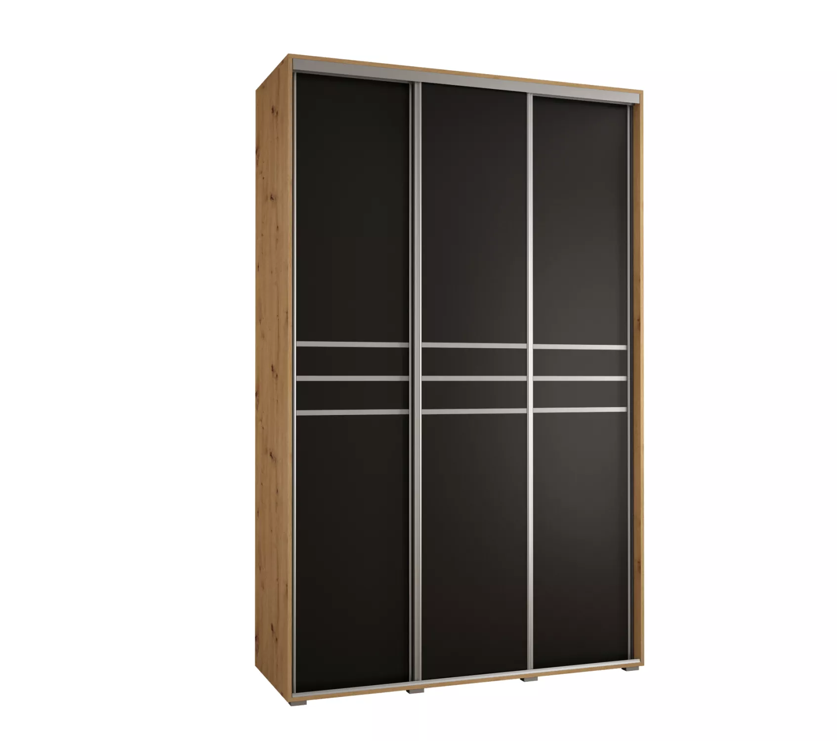 Šatní skříň YVONA 10 - 150/45 cm, dub artisan / černá / stříbrná