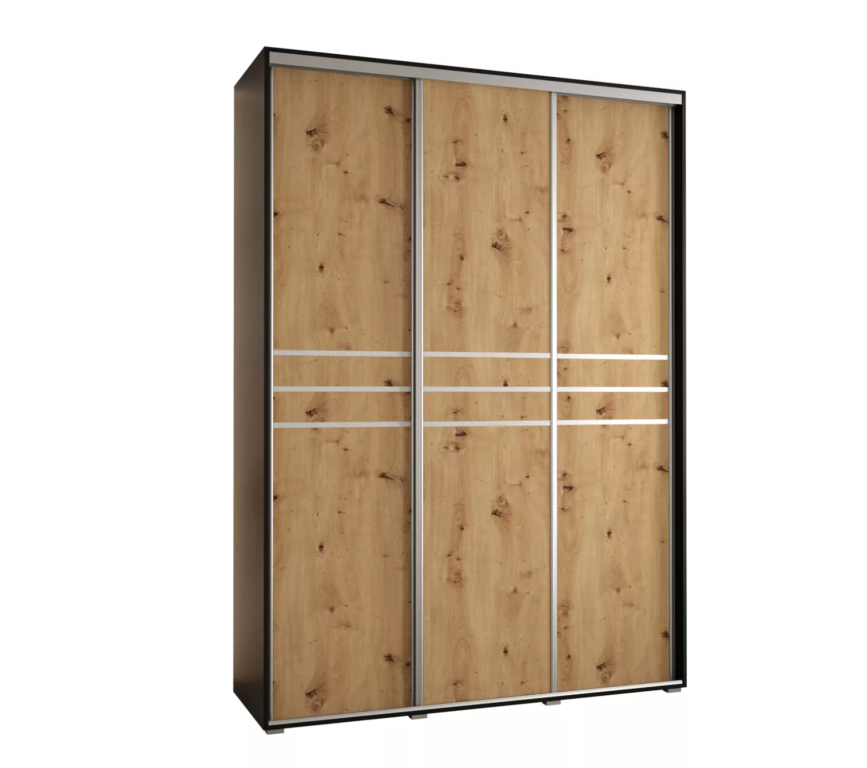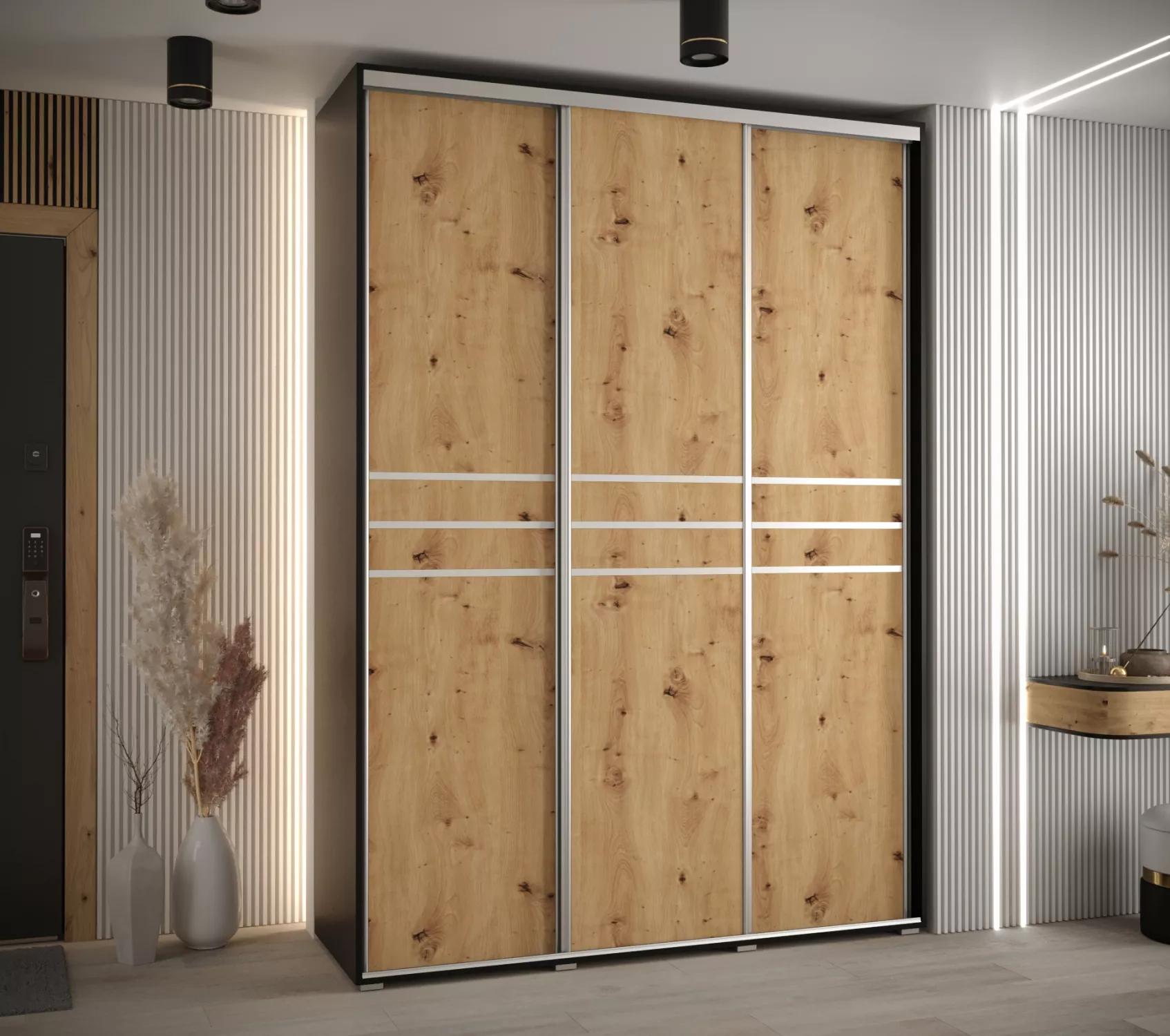 Šatní skříň YVONA 10 - 170/45 cm, černá / dub artisan / stříbrná