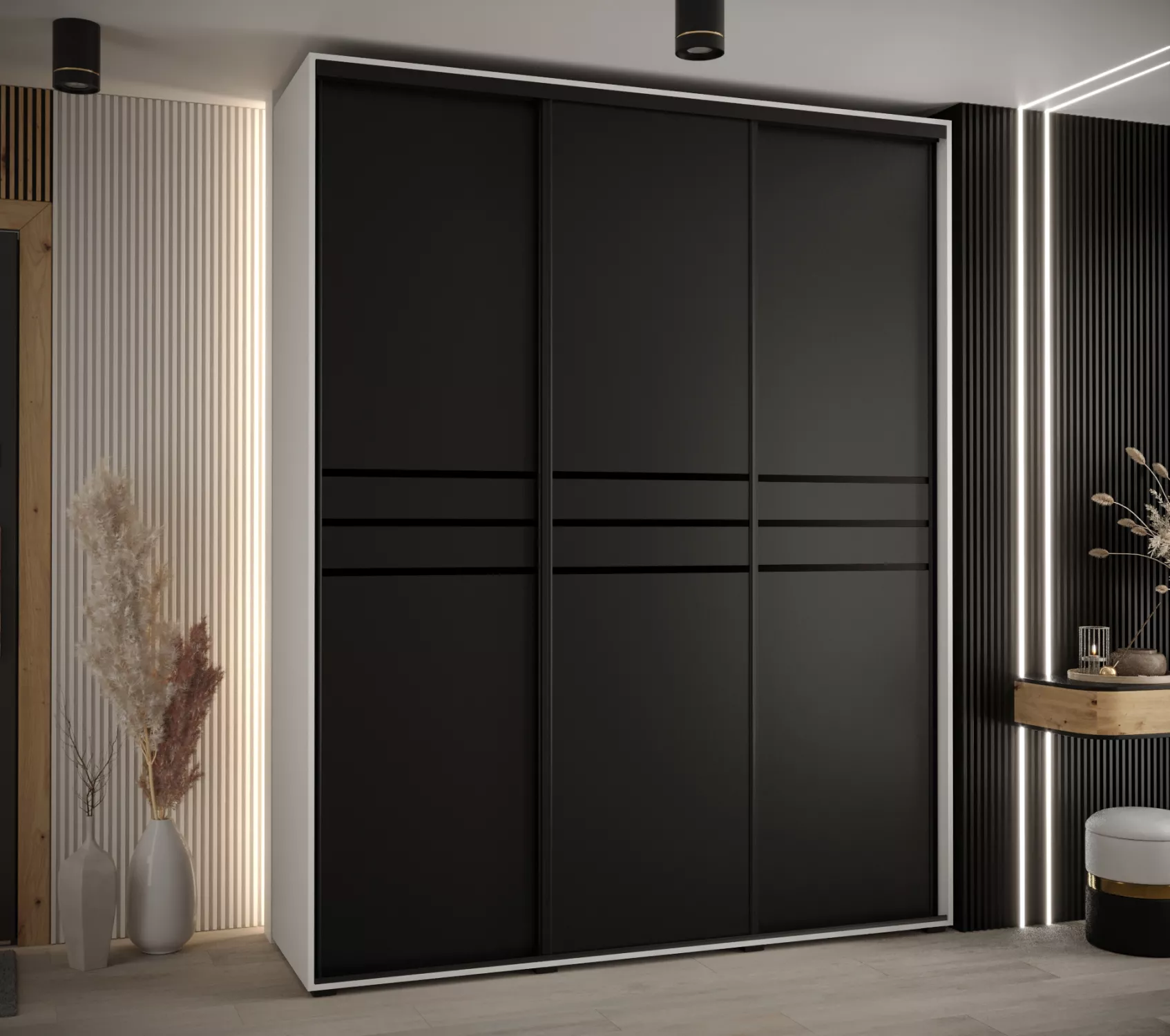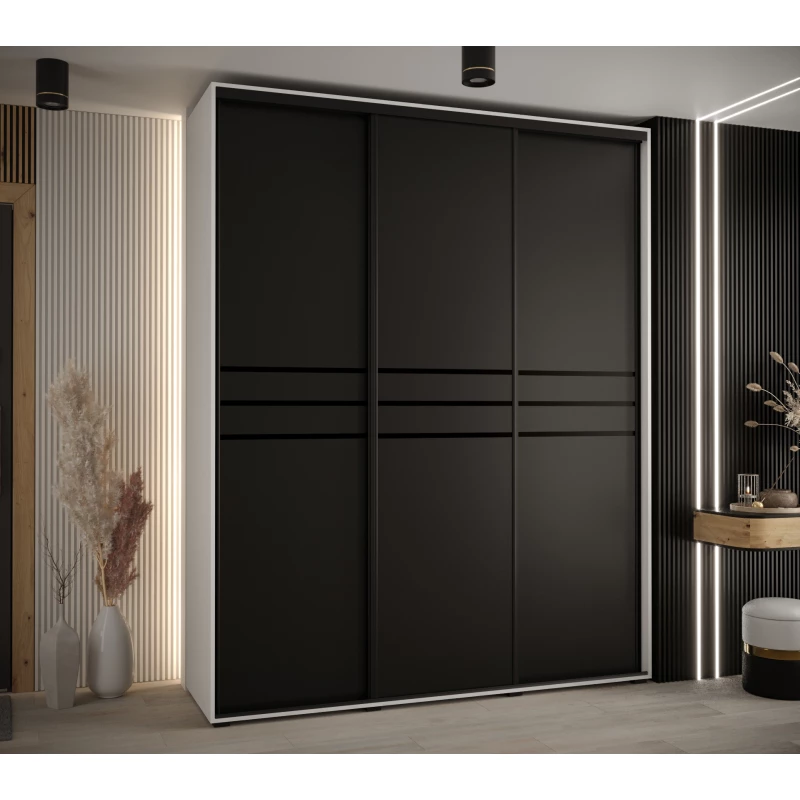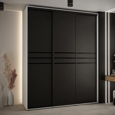 Šatní skříň YVONA 10 - 200/45 cm, bílá / černá / černá