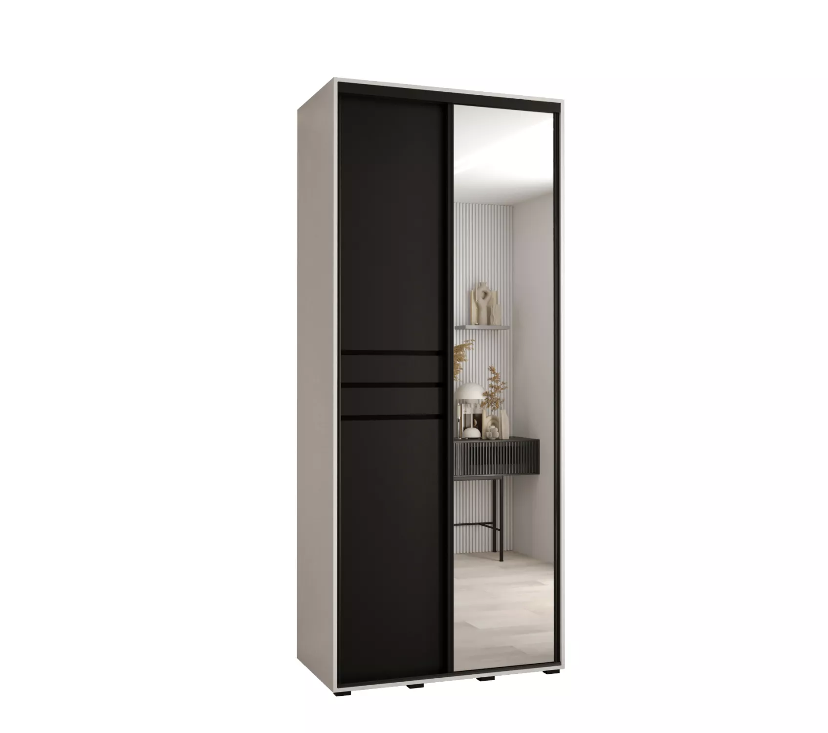 Šatní skříň YVONA 11 - 100/45 cm, bílá / černá / černá