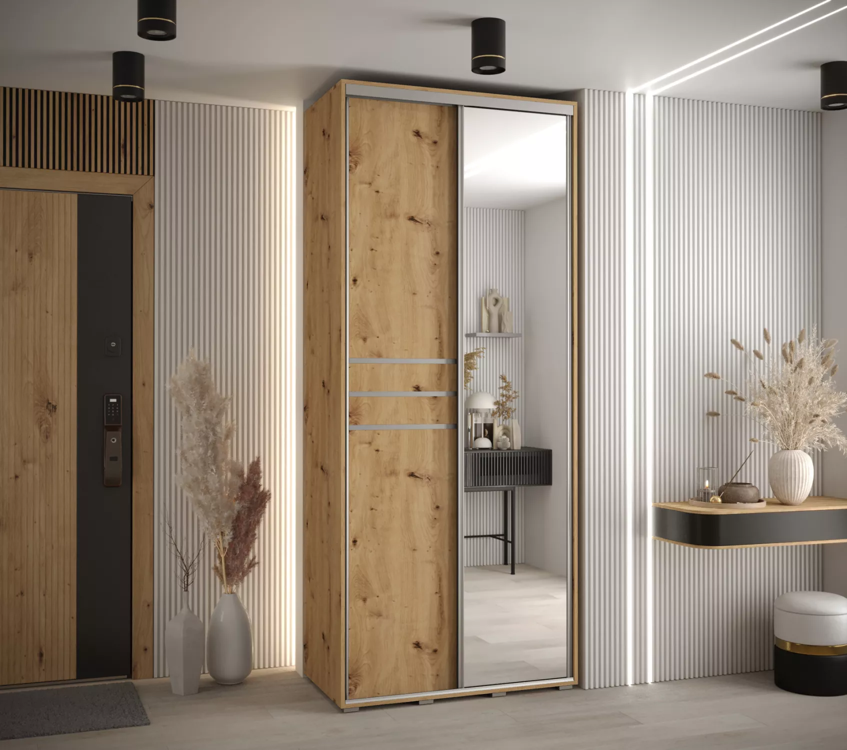 Šatní skříň YVONA 11 - 100/45 cm, dub artisan / stříbrná