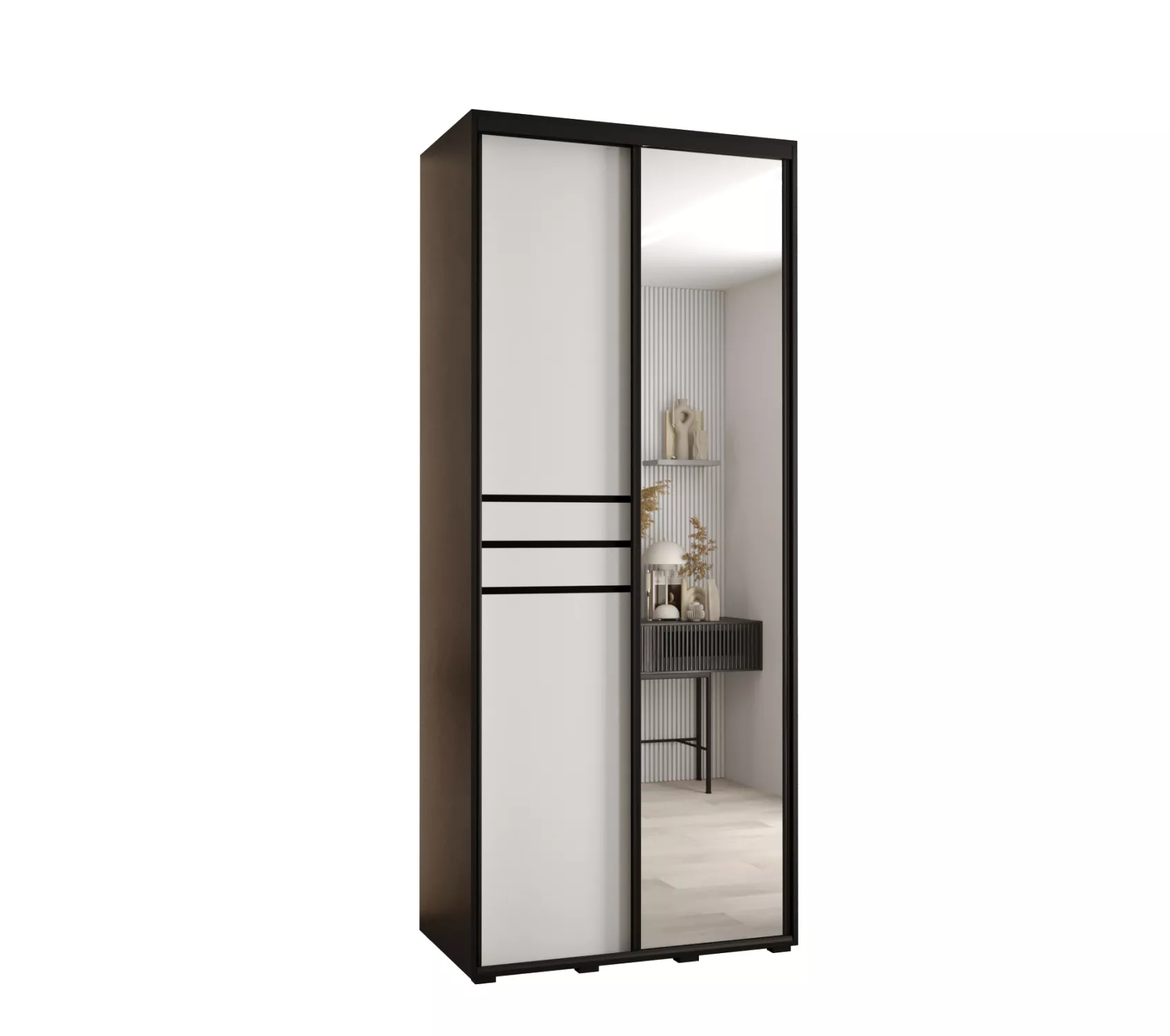 Šatní skříň YVONA 11 - 110/45 cm, černá / bílá / černá