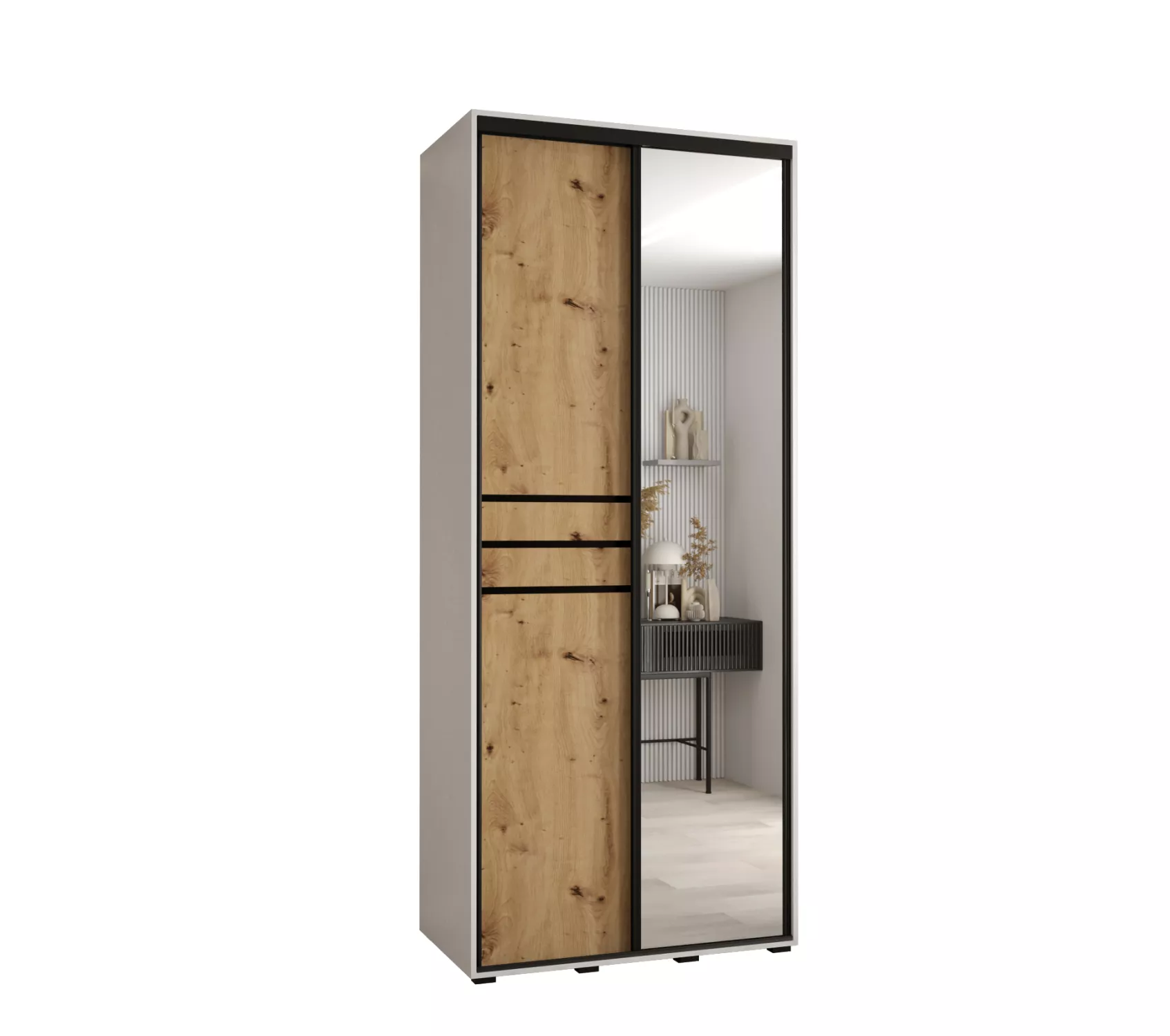 Šatní skříň YVONA 11 - 120/45 cm, bílá / dub artisan / černá