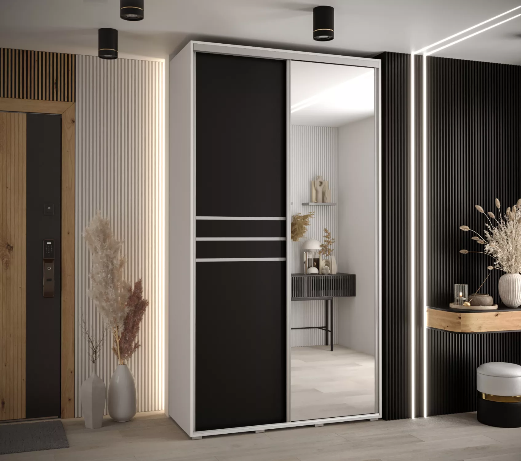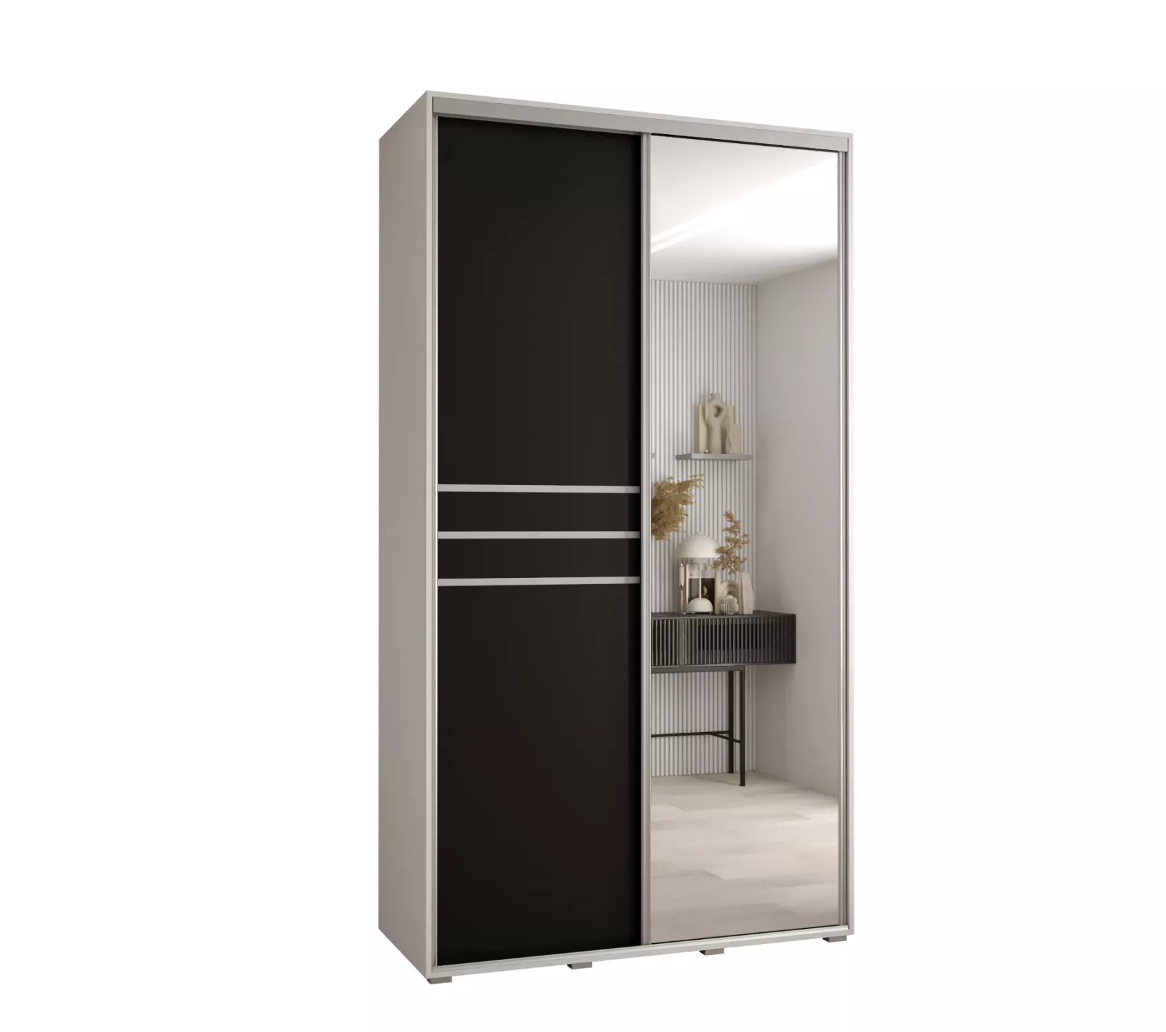 Šatní skříň YVONA 11 - 130/45 cm, bílá / černá / stříbrná