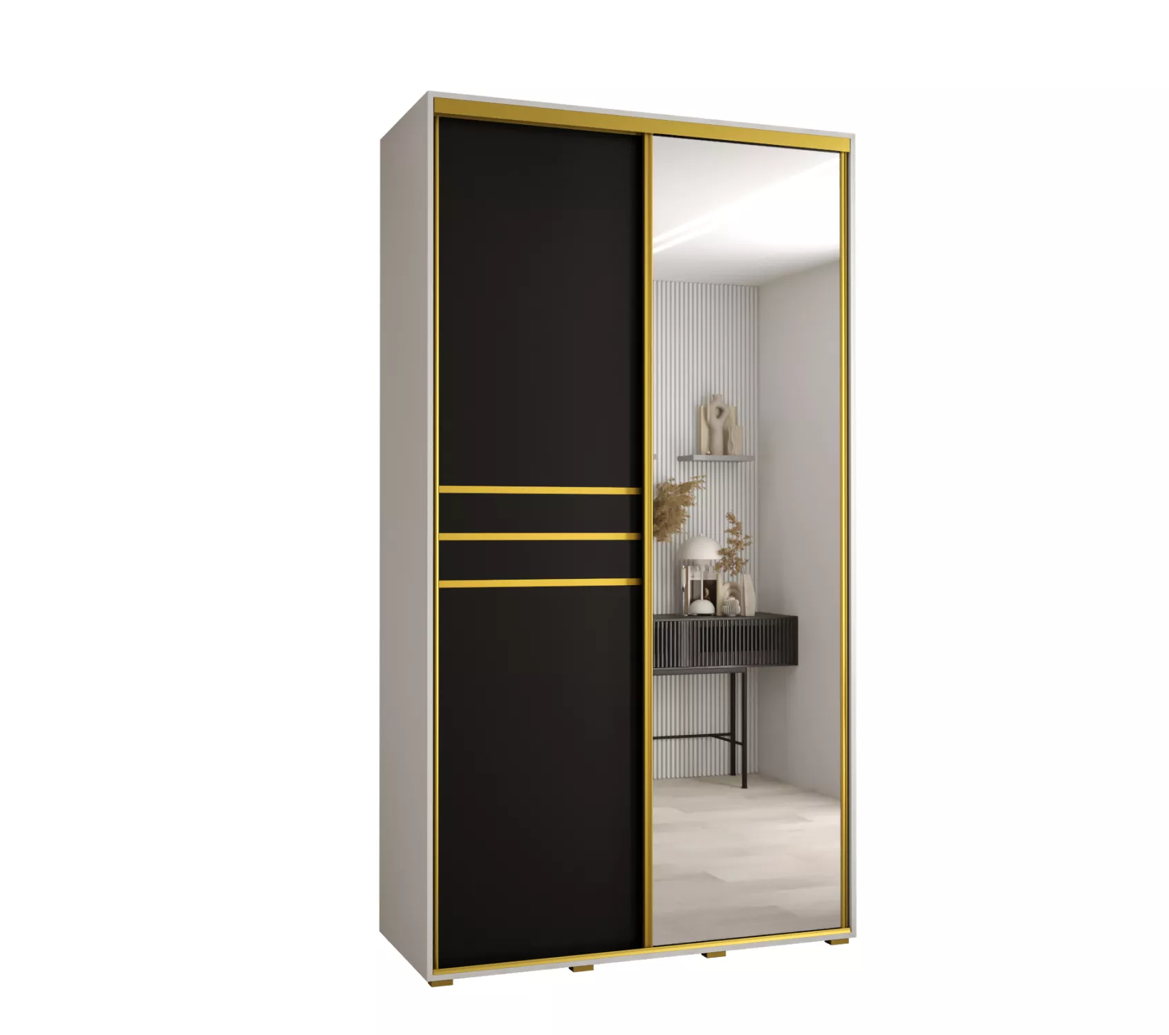 Šatní skříň YVONA 11 - 130/45 cm, bílá / černá / zlatá