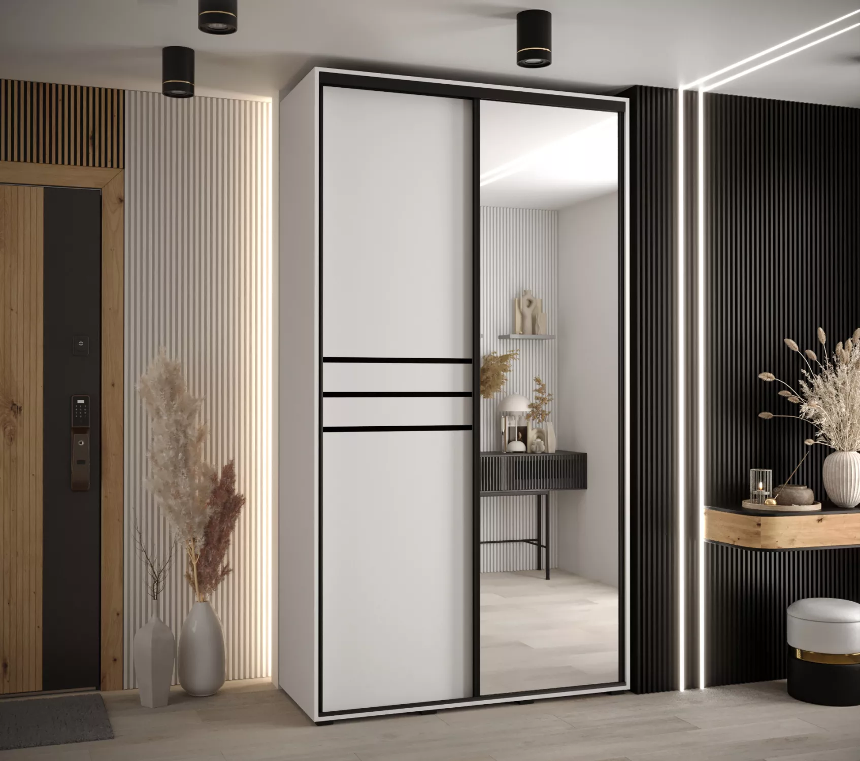 Šatní skříň YVONA 11 - 130/45 cm, bílá / černá