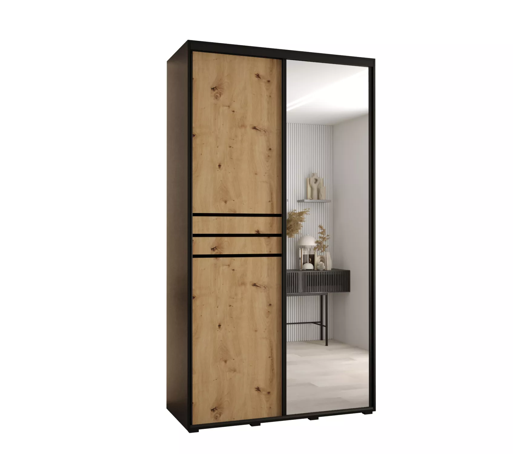 Šatní skříň YVONA 11 - 130/45 cm, černá / dub artisan / černá