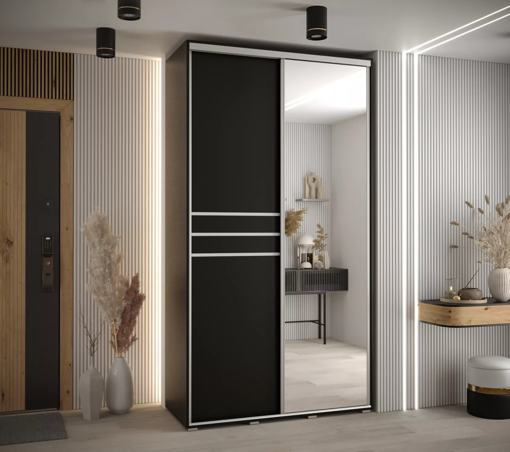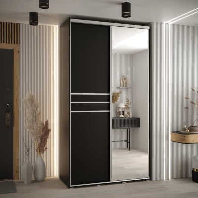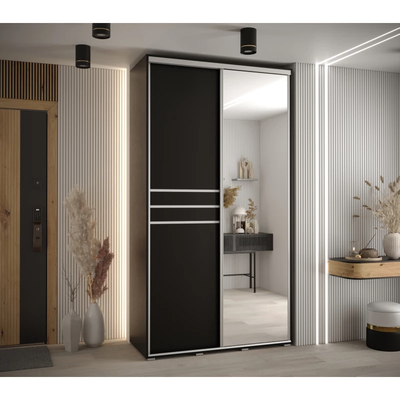 Šatní skříň YVONA 11 - 130/45 cm, černá / stříbrná