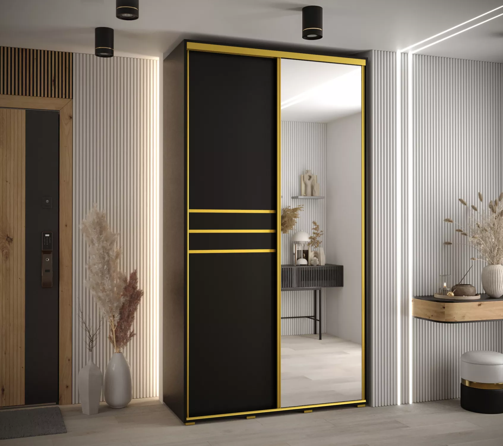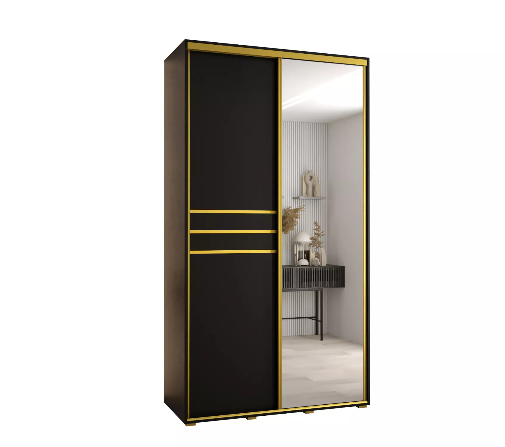Šatní skříň YVONA 11 - 130/45 cm, černá / zlatá