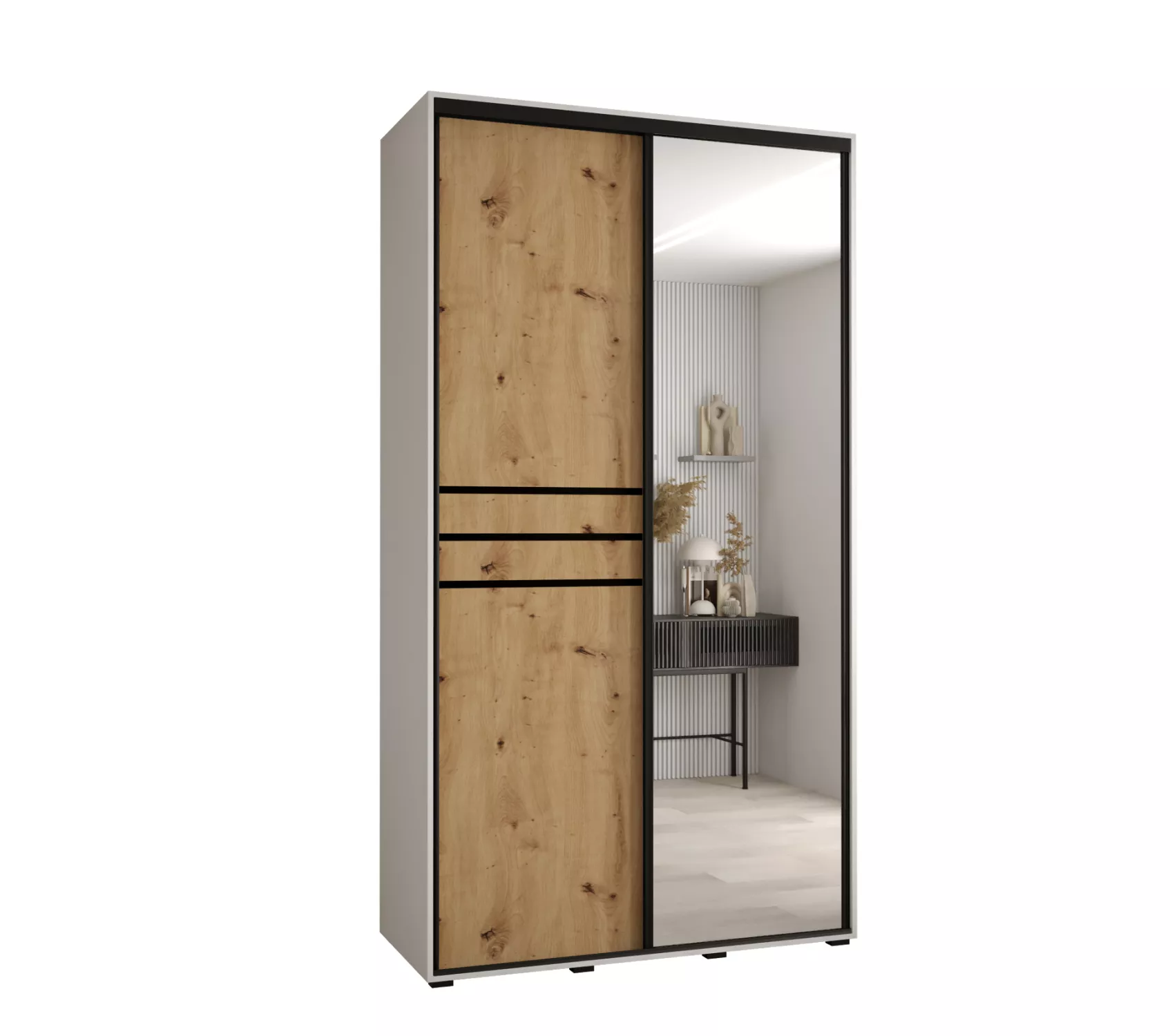 Šatní skříň YVONA 11 - 140/45 cm, bílá / dub artisan / černá
