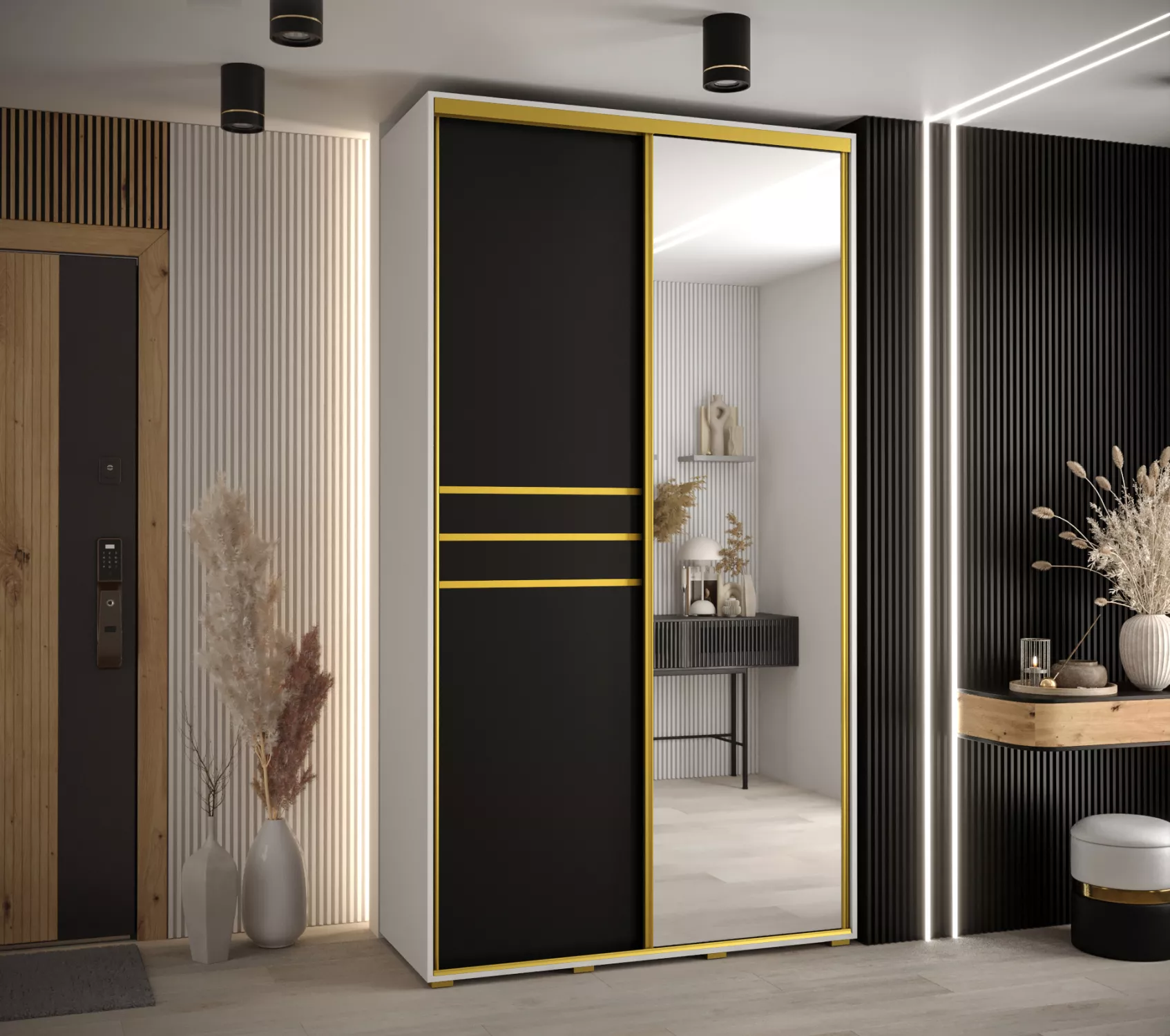 Šatní skříň YVONA 11 - 140/45 cm, bílá / černá / zlatá