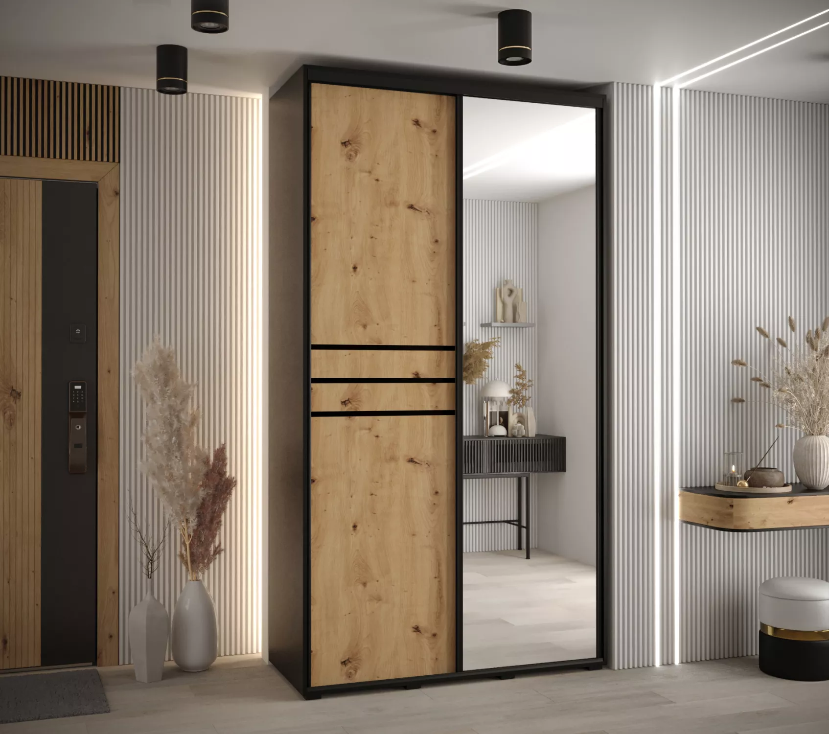 Šatní skříň YVONA 11 - 140/45 cm, černá / dub artisan / černá