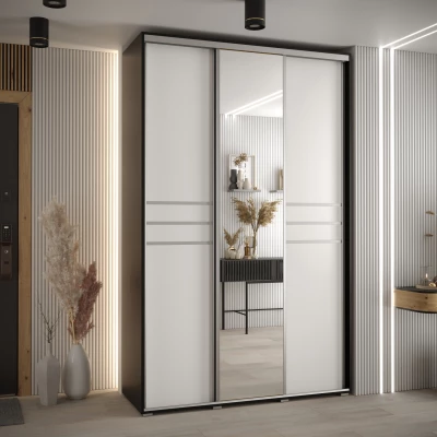 Šatní skříň YVONA 11 - 150/45 cm, černá / bílá / stříbrná