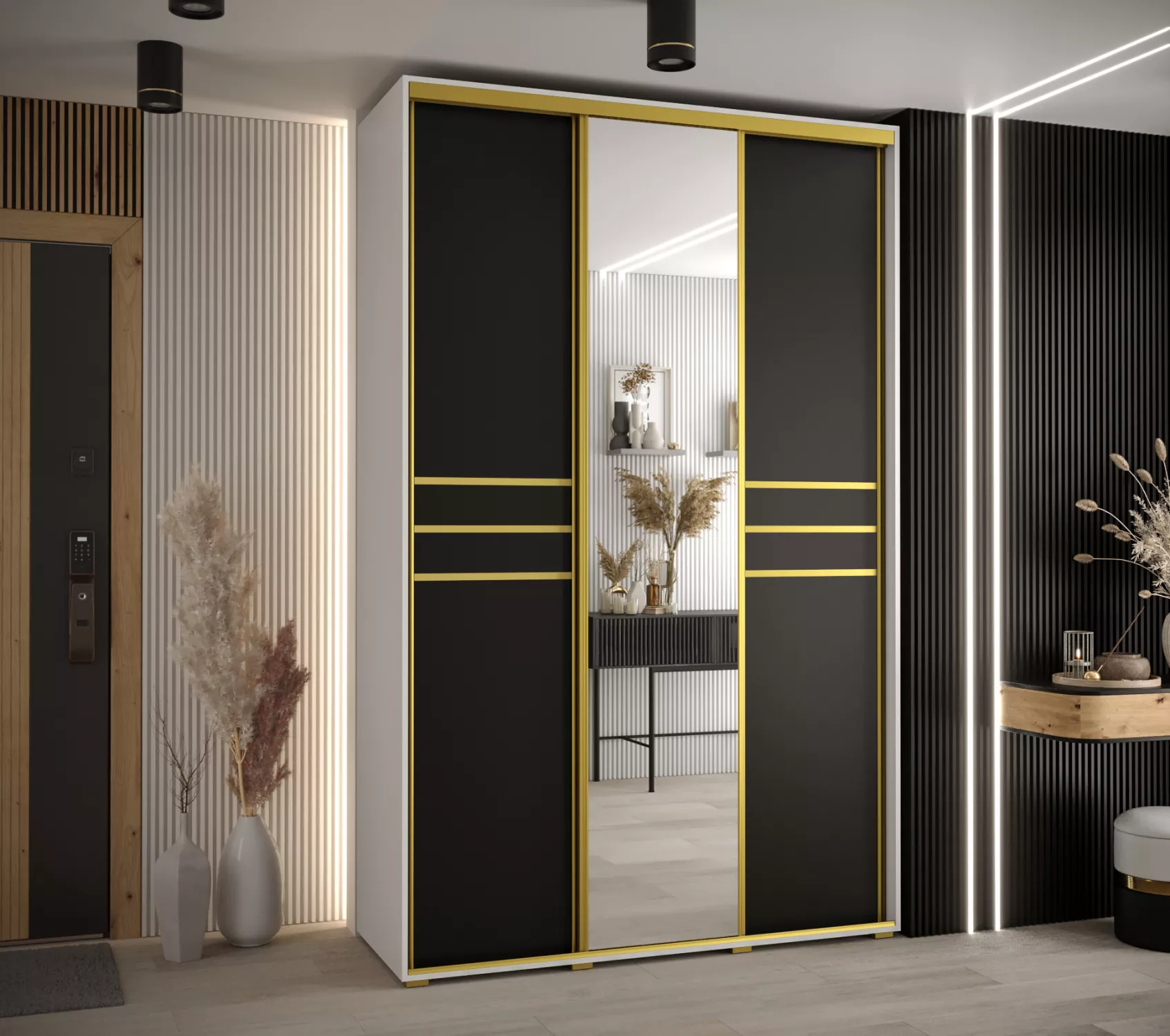 Šatní skříň YVONA 11 - 160/45 cm, bílá / černá / zlatá
