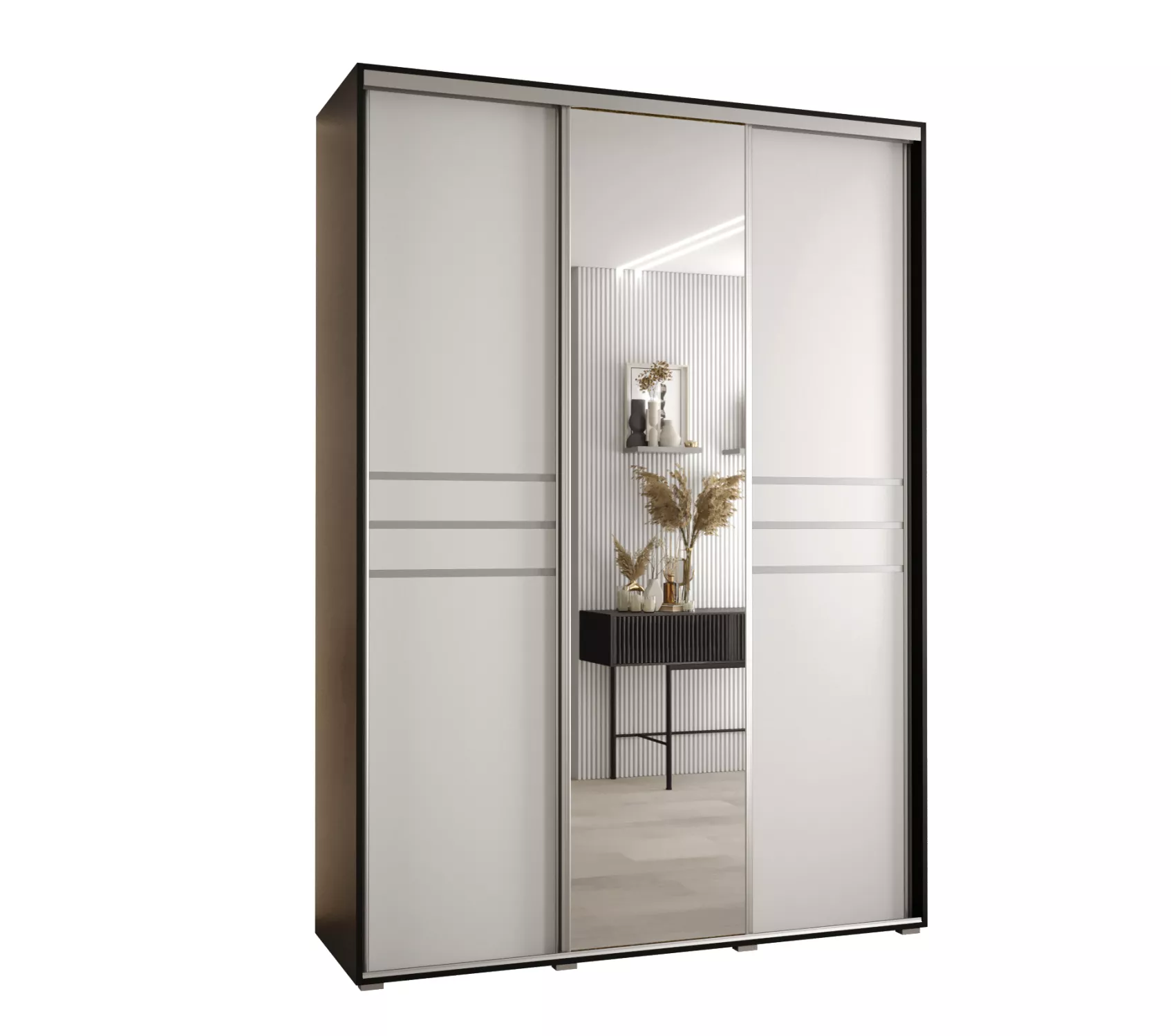 Šatní skříň YVONA 11 - 180/45 cm, černá / bílá / stříbrná