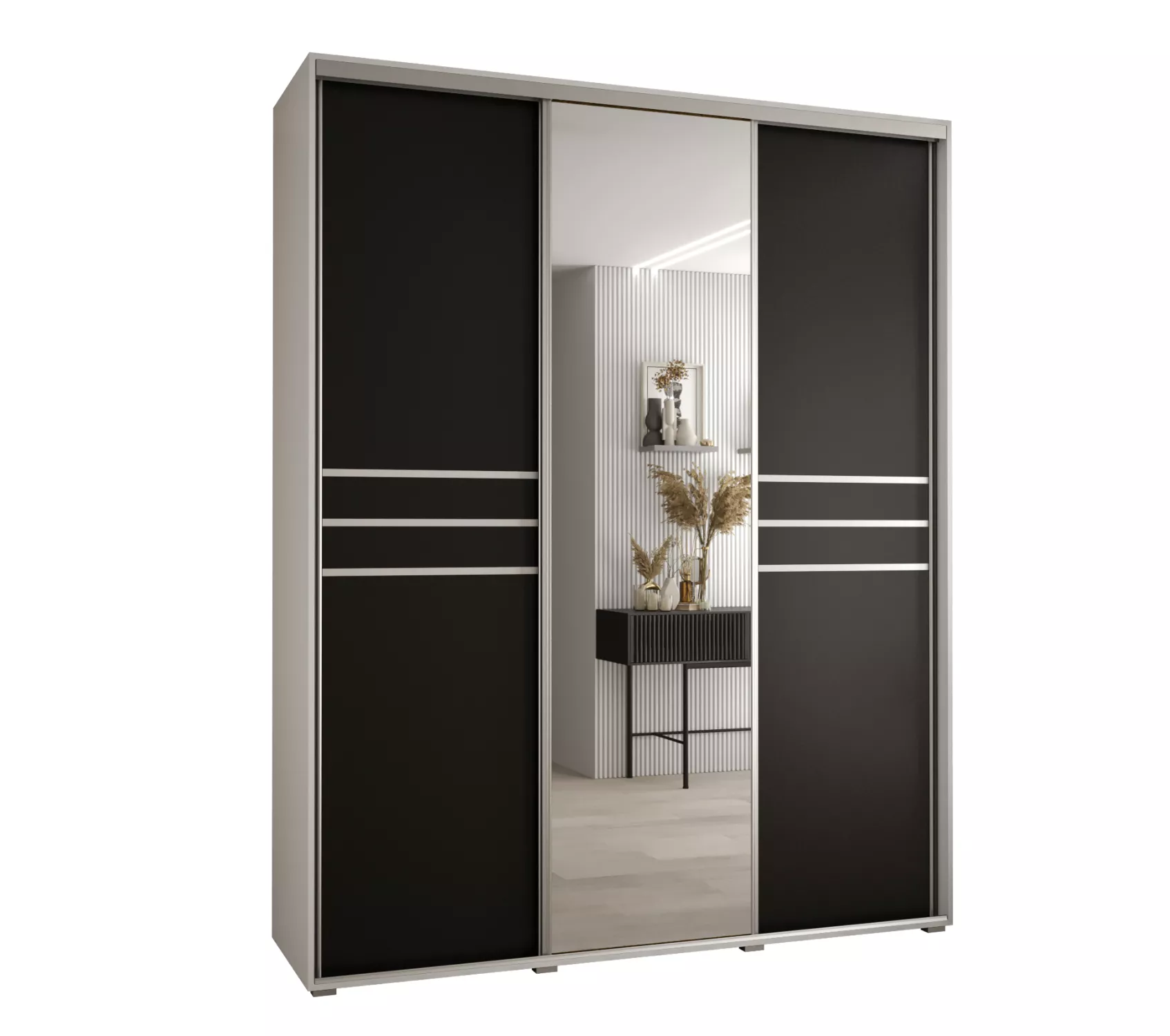 Šatní skříň YVONA 11 - 200/45 cm, bílá / černá / stříbrná