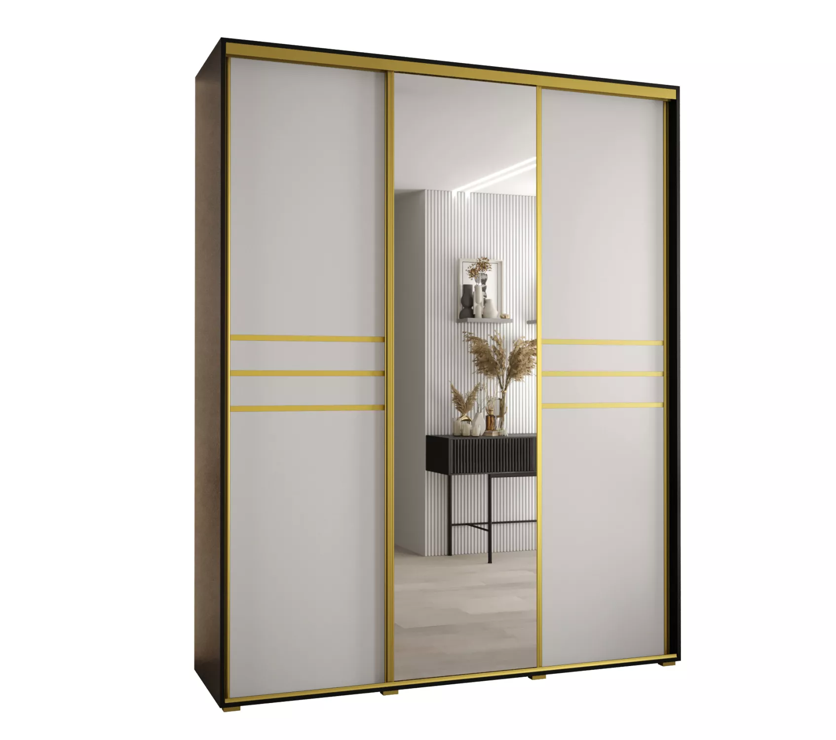 Šatní skříň YVONA 11 - 200/45 cm, černá / bílá / zlatá