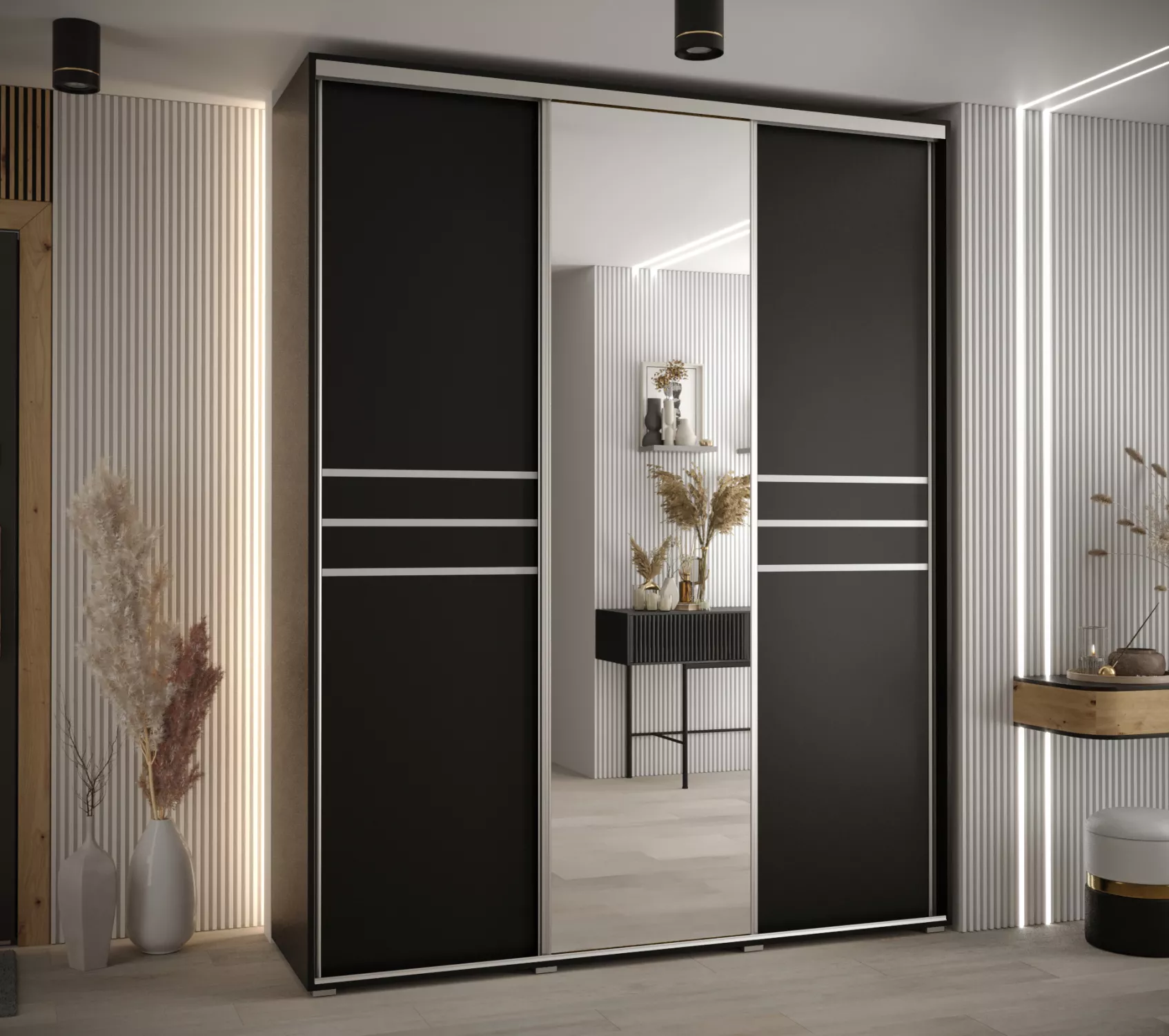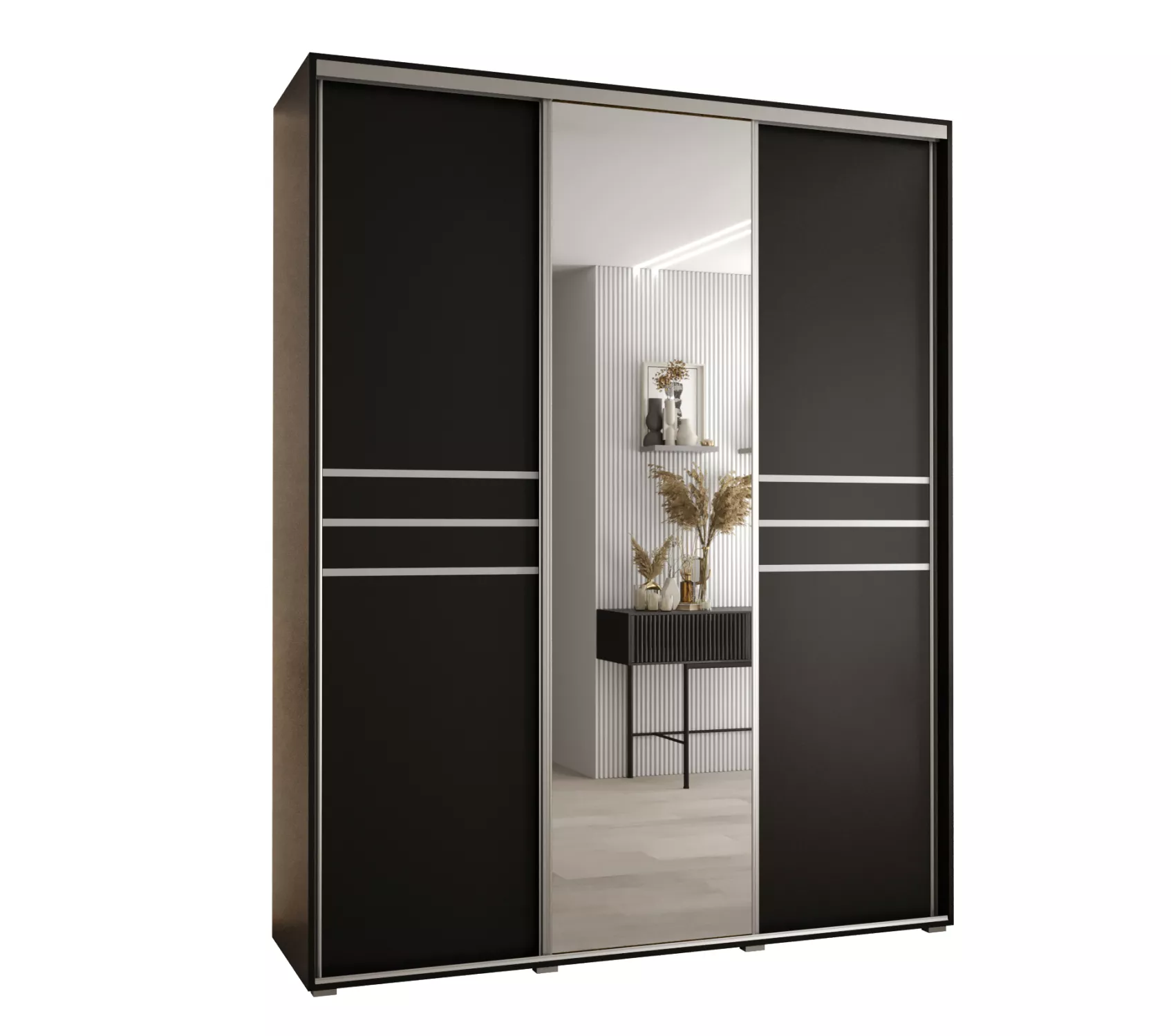 Šatní skříň YVONA 11 - 200/45 cm, černá / stříbrná