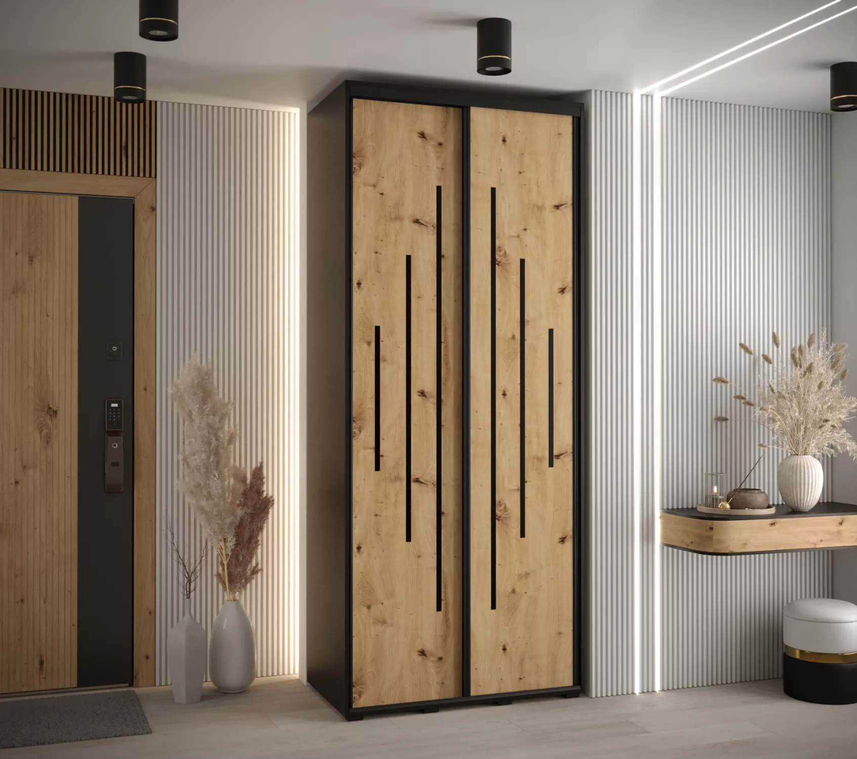 Šatní skříň YVONA 12 - 100/45 cm, černá / dub artisan / černá