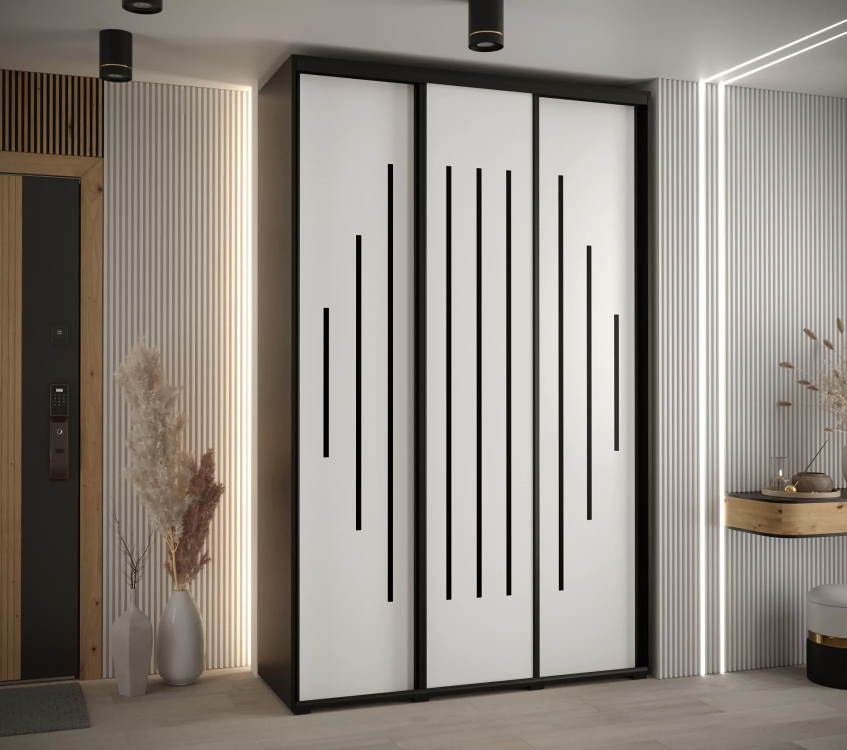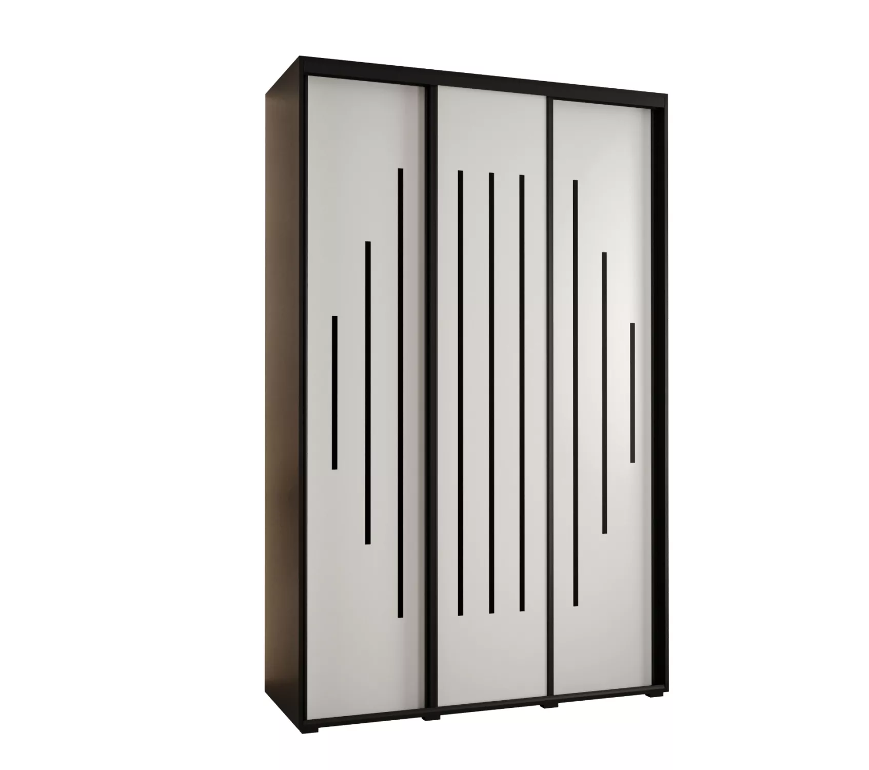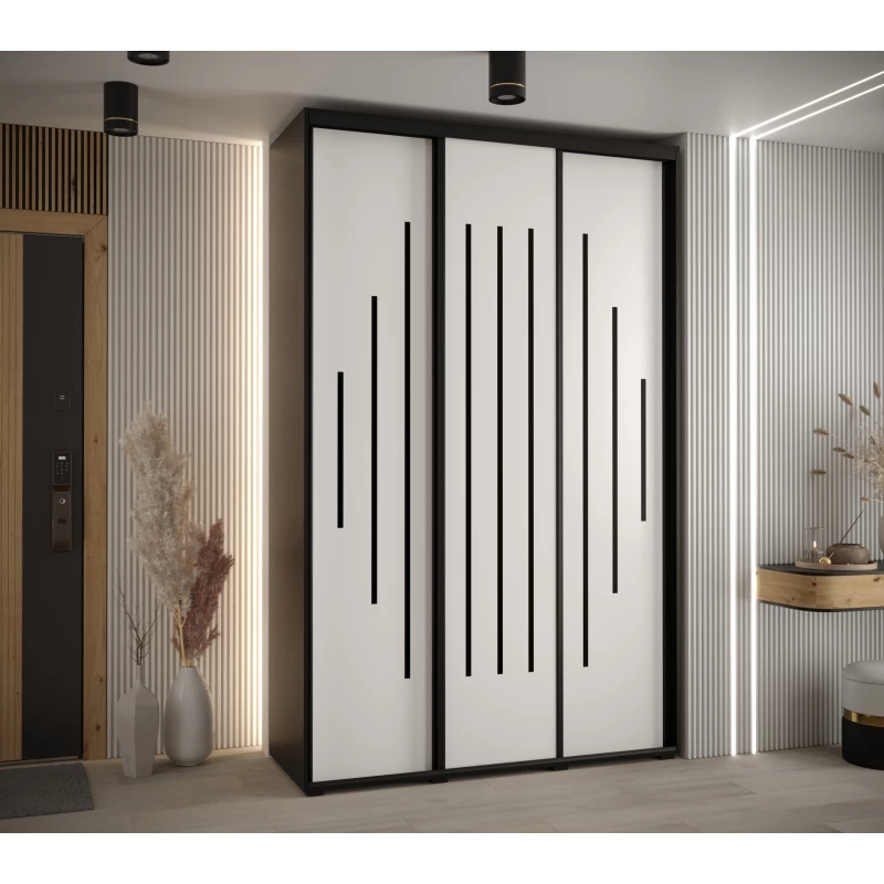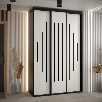 Šatní skříň YVONA 12 - 150/45 cm, černá / bílá / černá