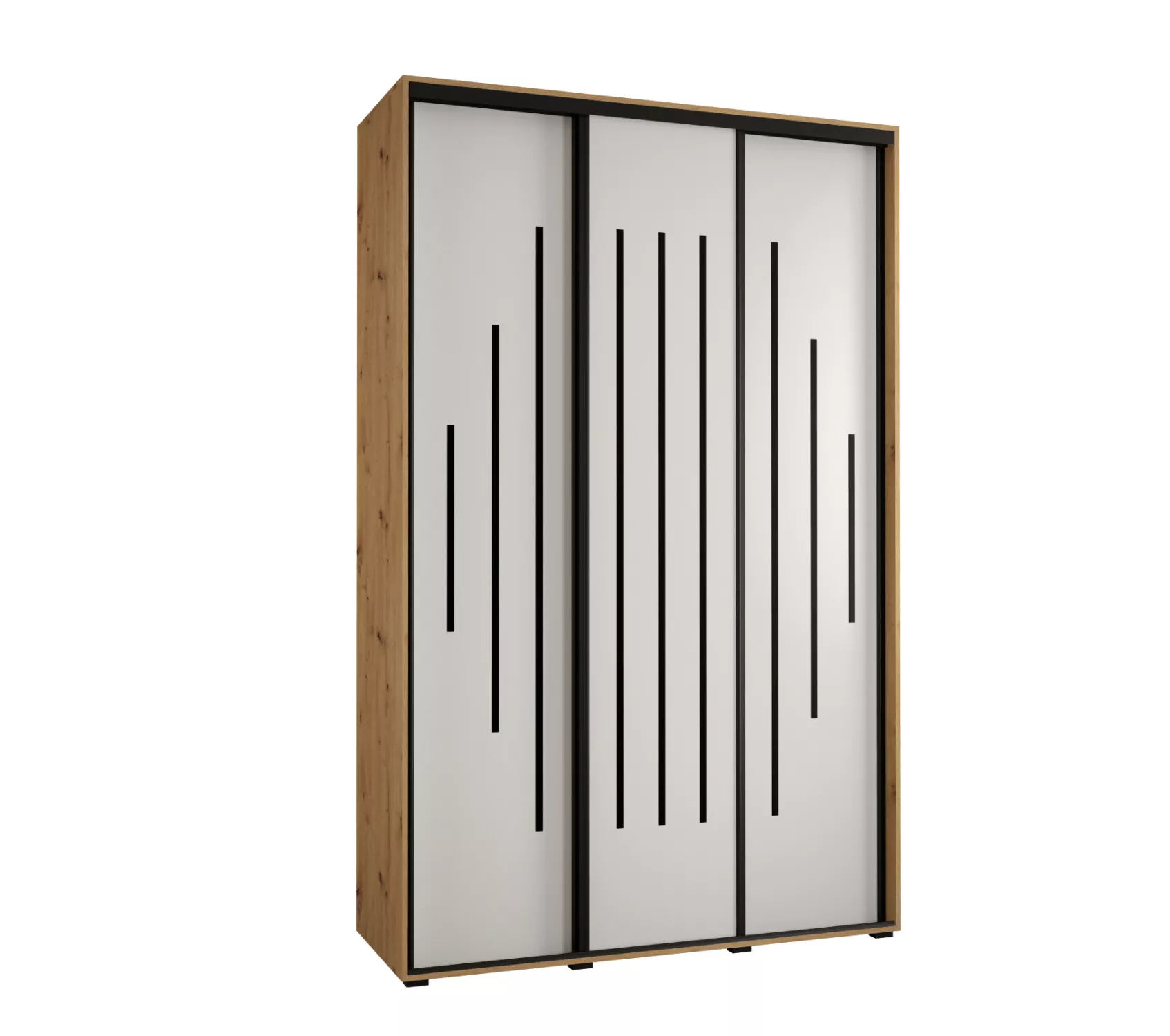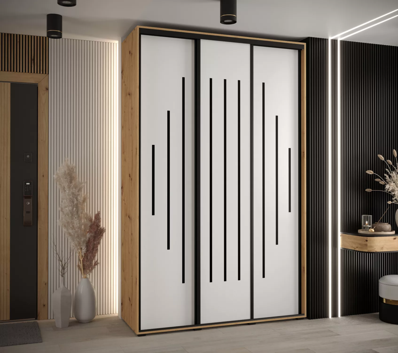 Šatní skříň YVONA 12 - 150/45 cm, dub artisan / bílá / černá