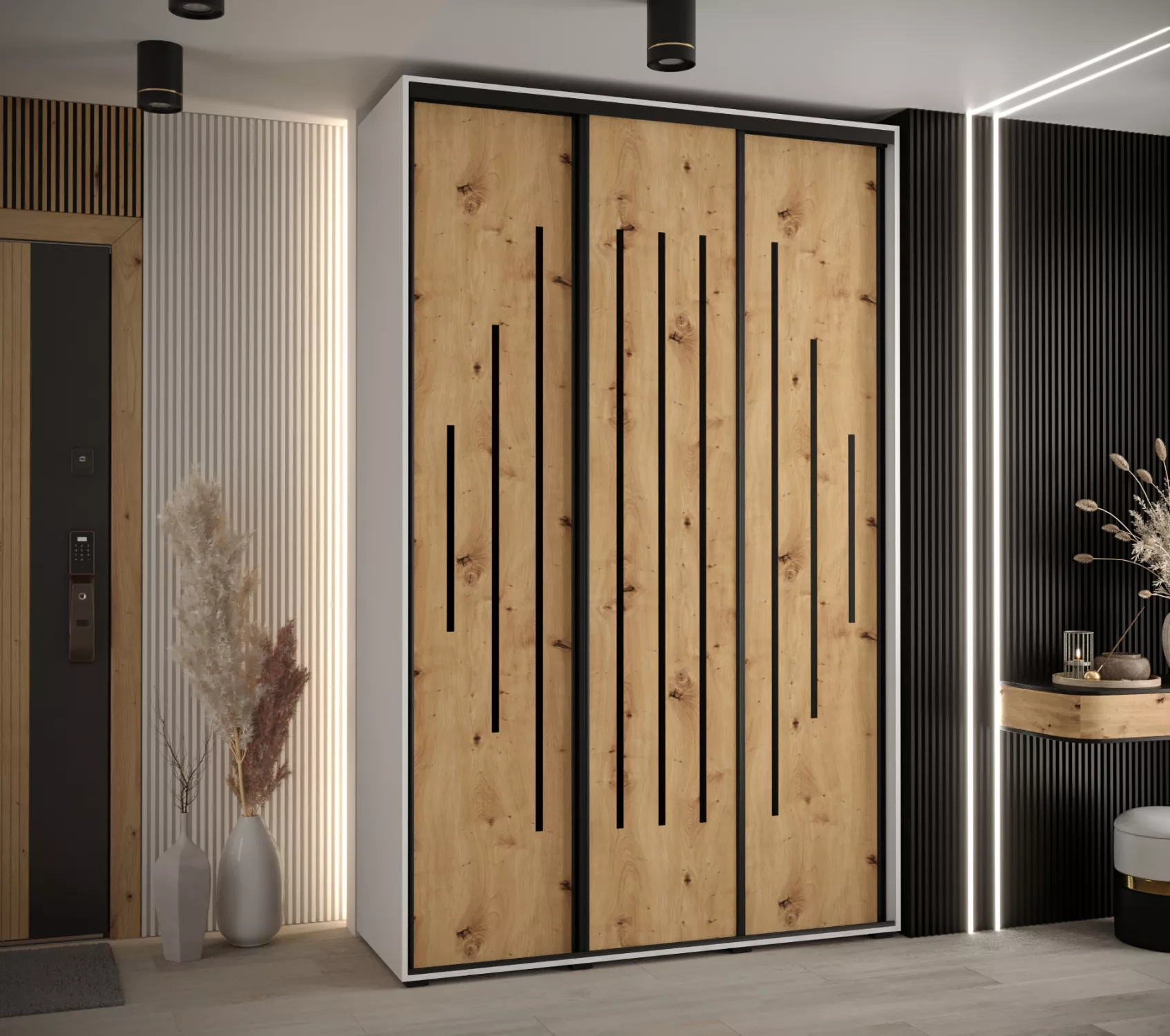 Šatní skříň YVONA 12 - 160/45 cm, bílá / dub artisan / černá