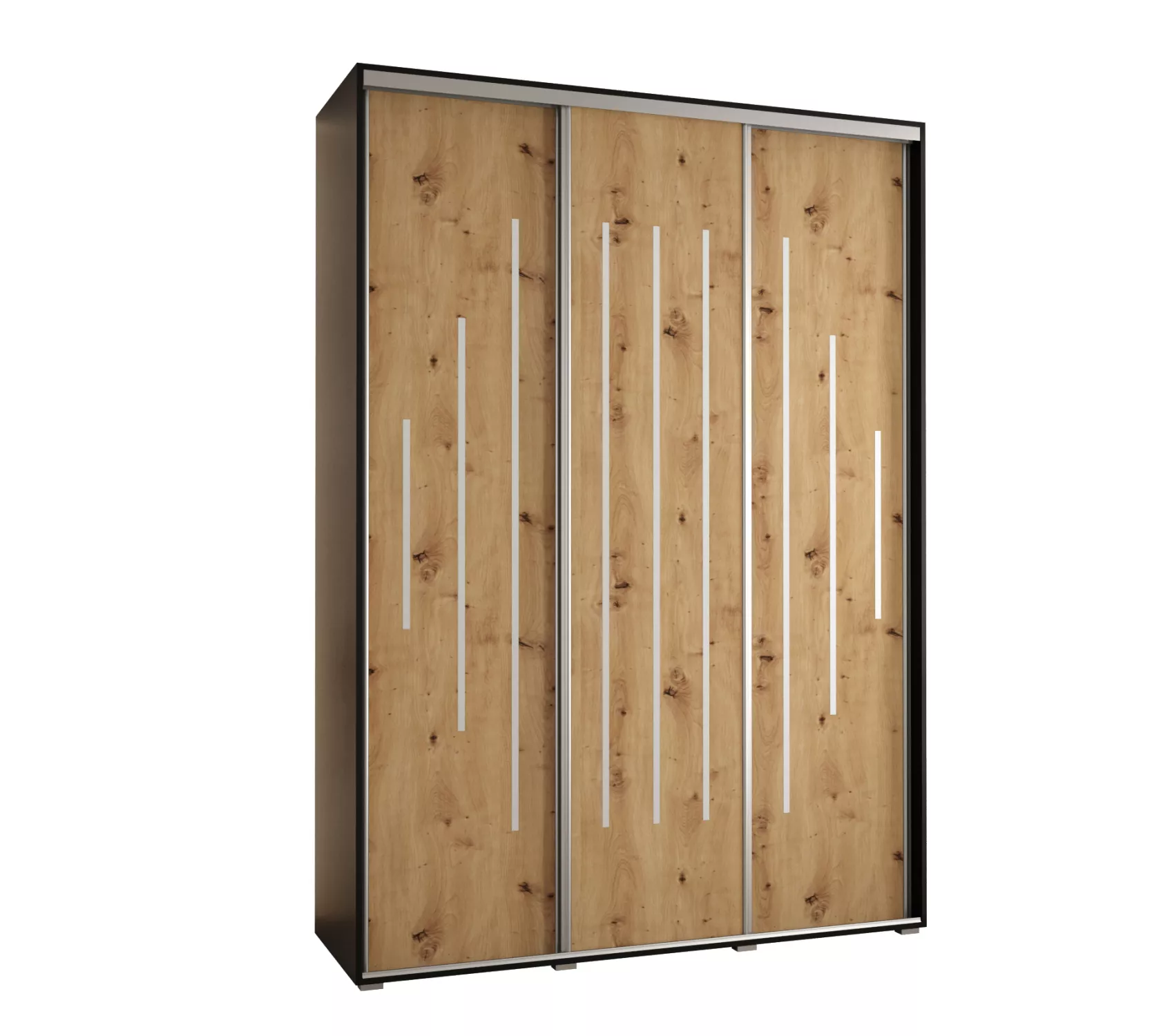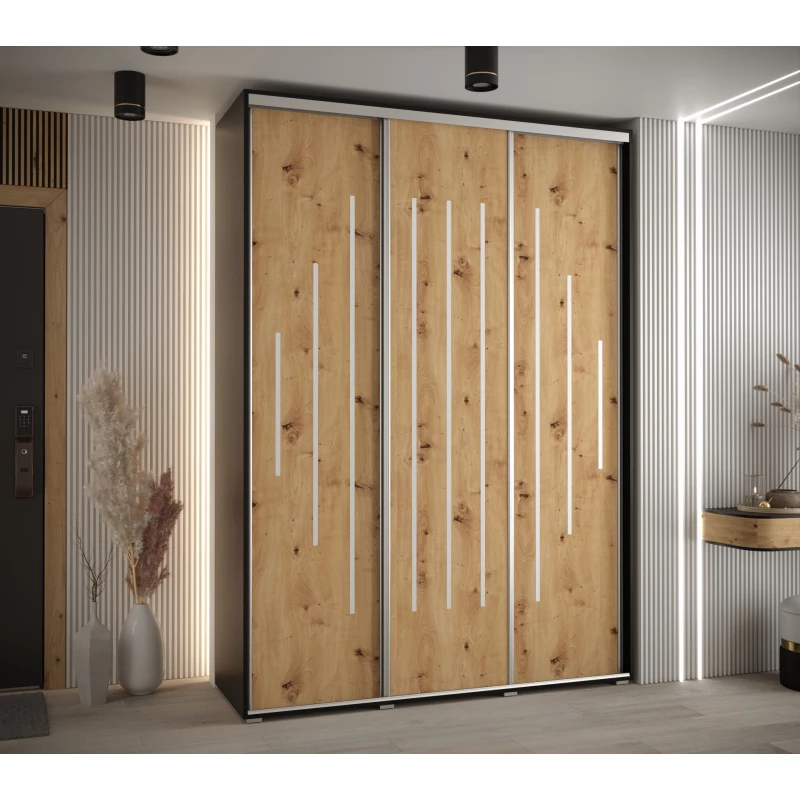 Šatní skříň YVONA 12 - 170/45 cm, černá / dub artisan / stříbrná