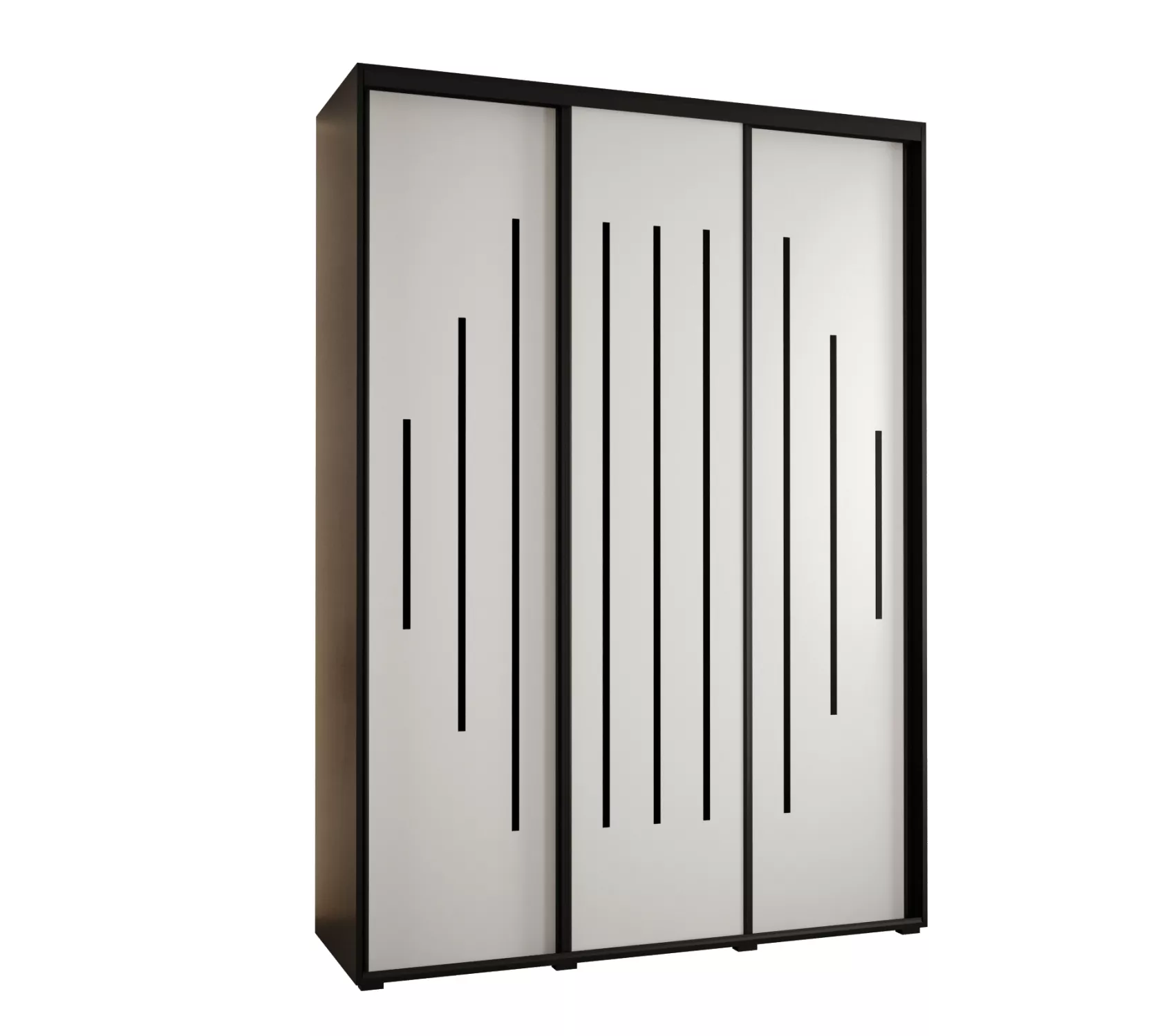 Šatní skříň YVONA 12 - 180/45 cm, černá / bílá / černá