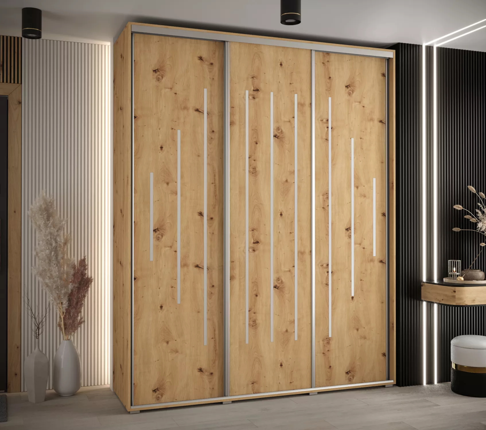 Šatní skříň YVONA 12 - 190/45 cm, dub artisan / stříbrná
