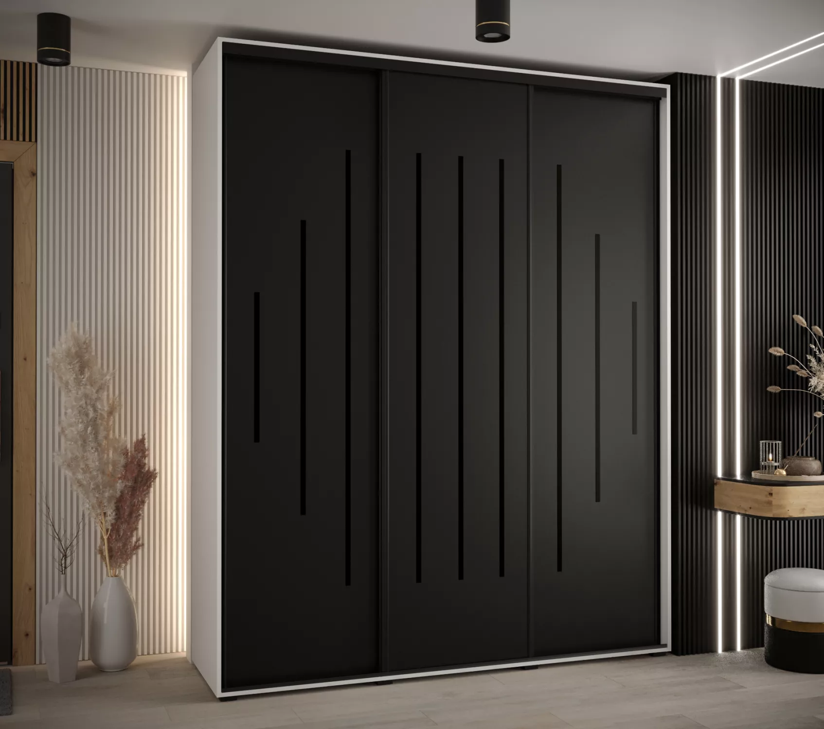 Šatní skříň YVONA 12 - 200/45 cm, bílá / černá / černá