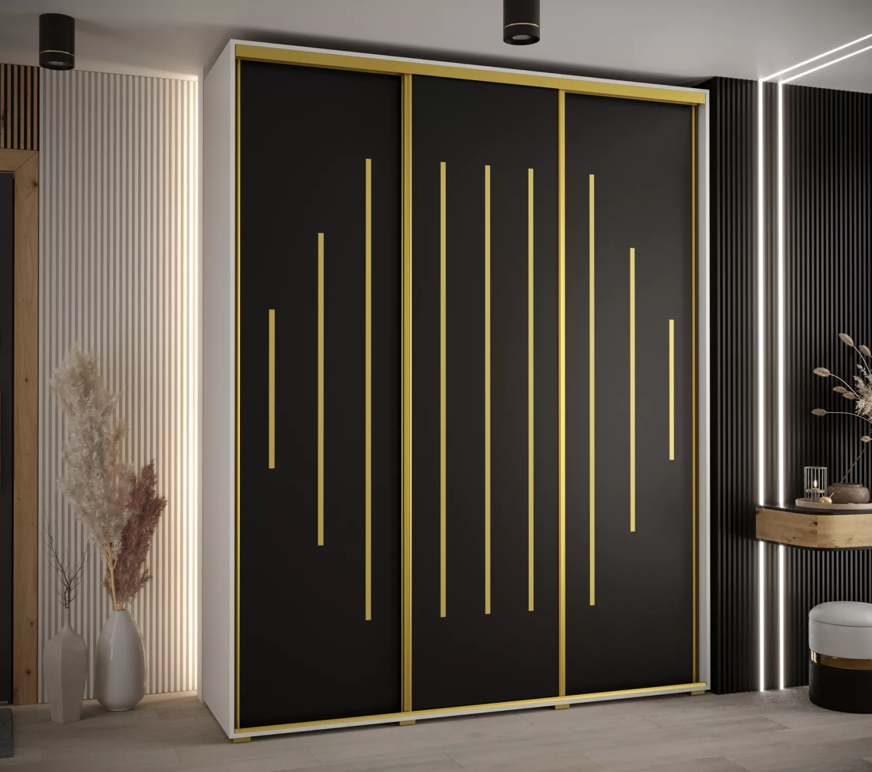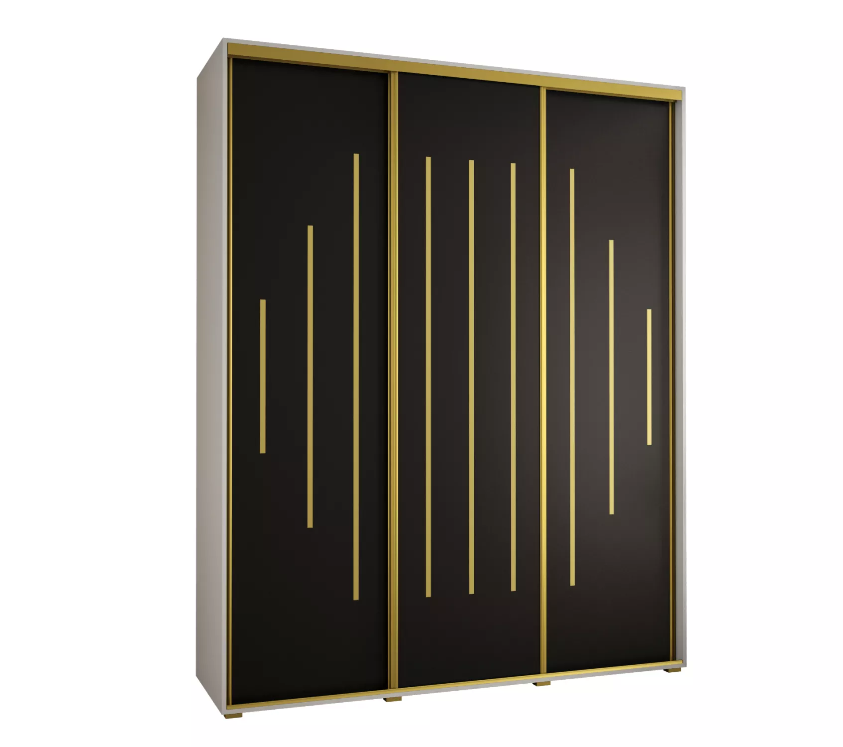 Šatní skříň YVONA 12 - 200/45 cm, bílá / černá / zlatá