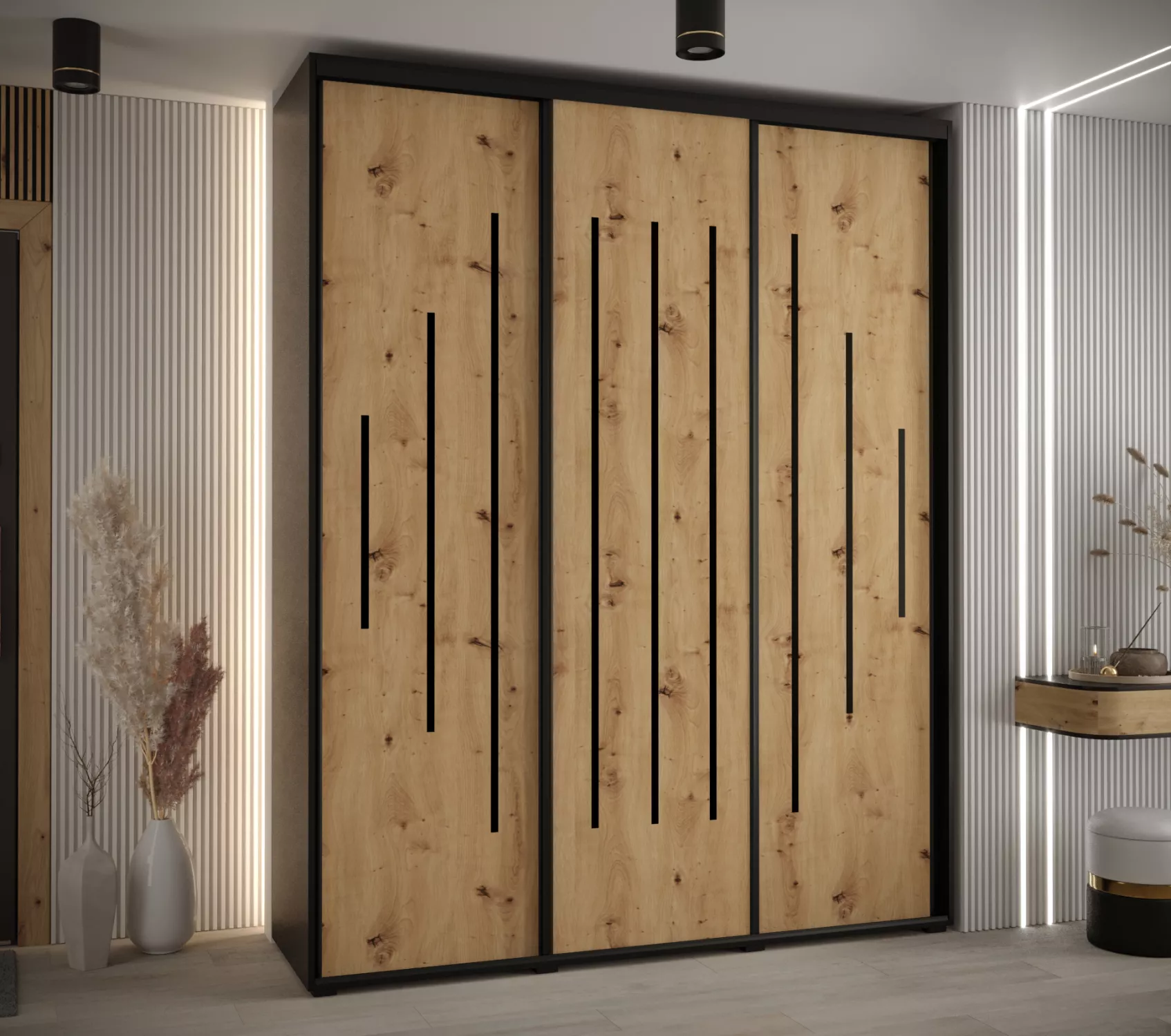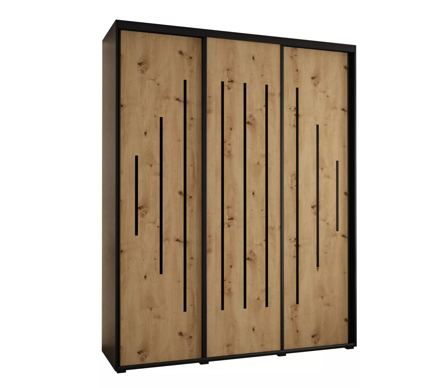 Šatní skříň YVONA 12 - 200/45 cm, černá / dub artisan / černá