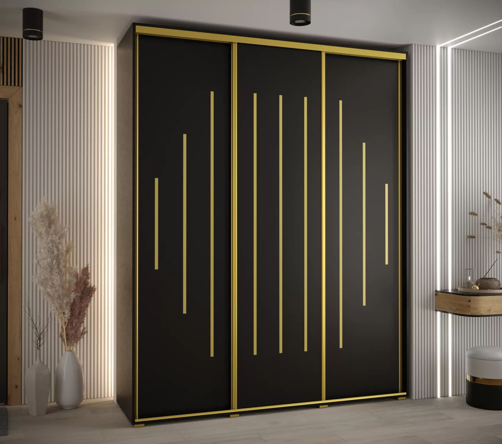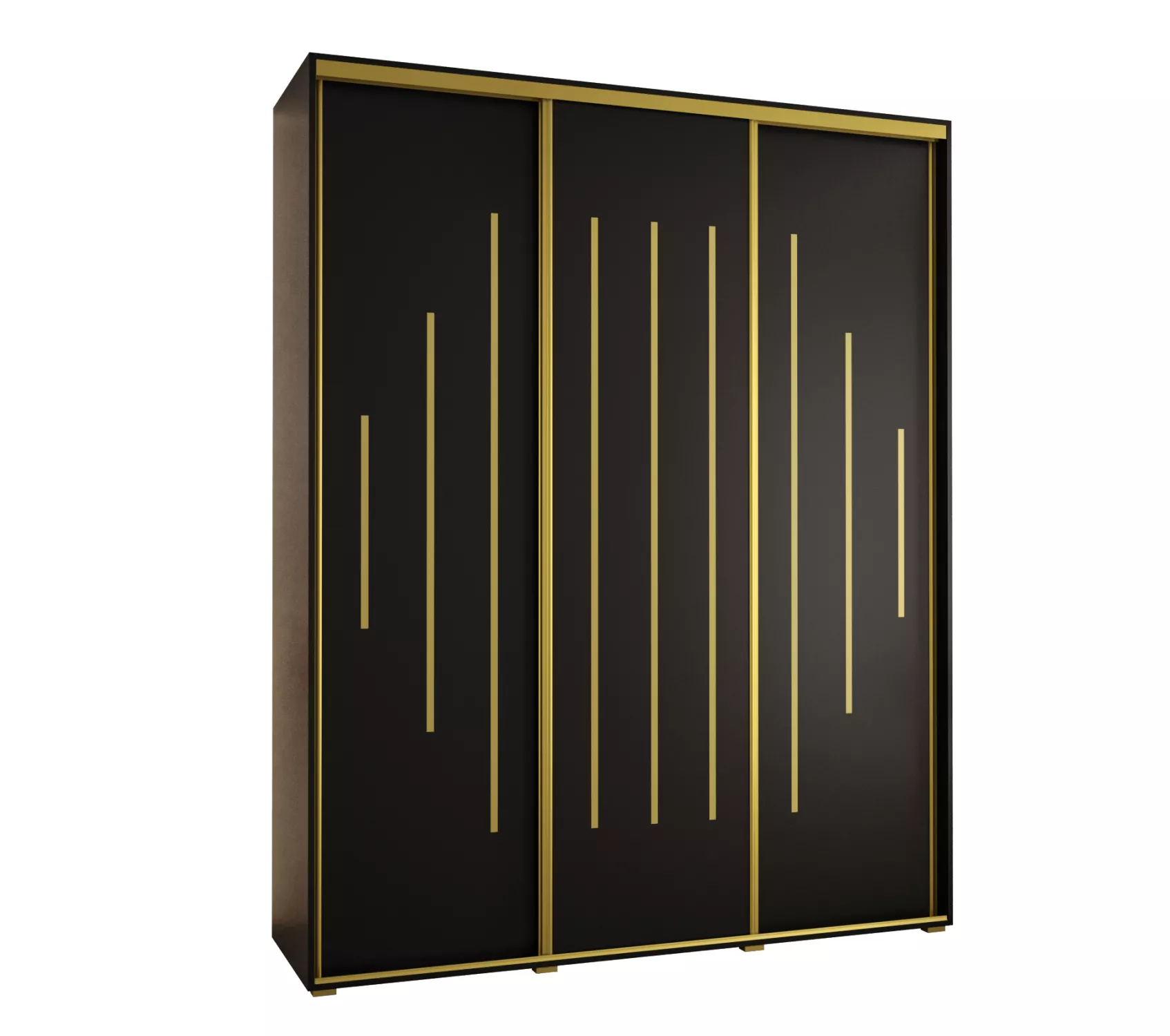 Šatní skříň YVONA 12 - 200/45 cm, černá / zlatá