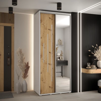 Šatní skříň YVONA 13 - 100/45 cm, bílá / dub artisan / stříbrná