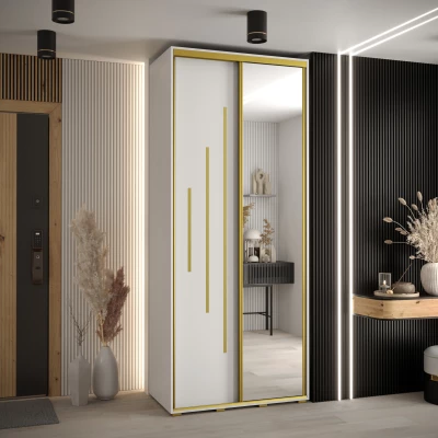 Šatní skříň YVONA 13 - 100/45 cm, bílá / zlatá