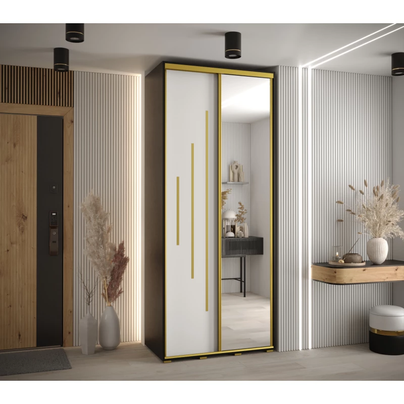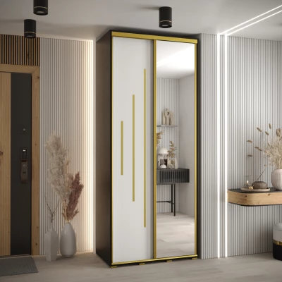 Šatní skříň YVONA 13 - 100/45 cm, černá / bílá / zlatá