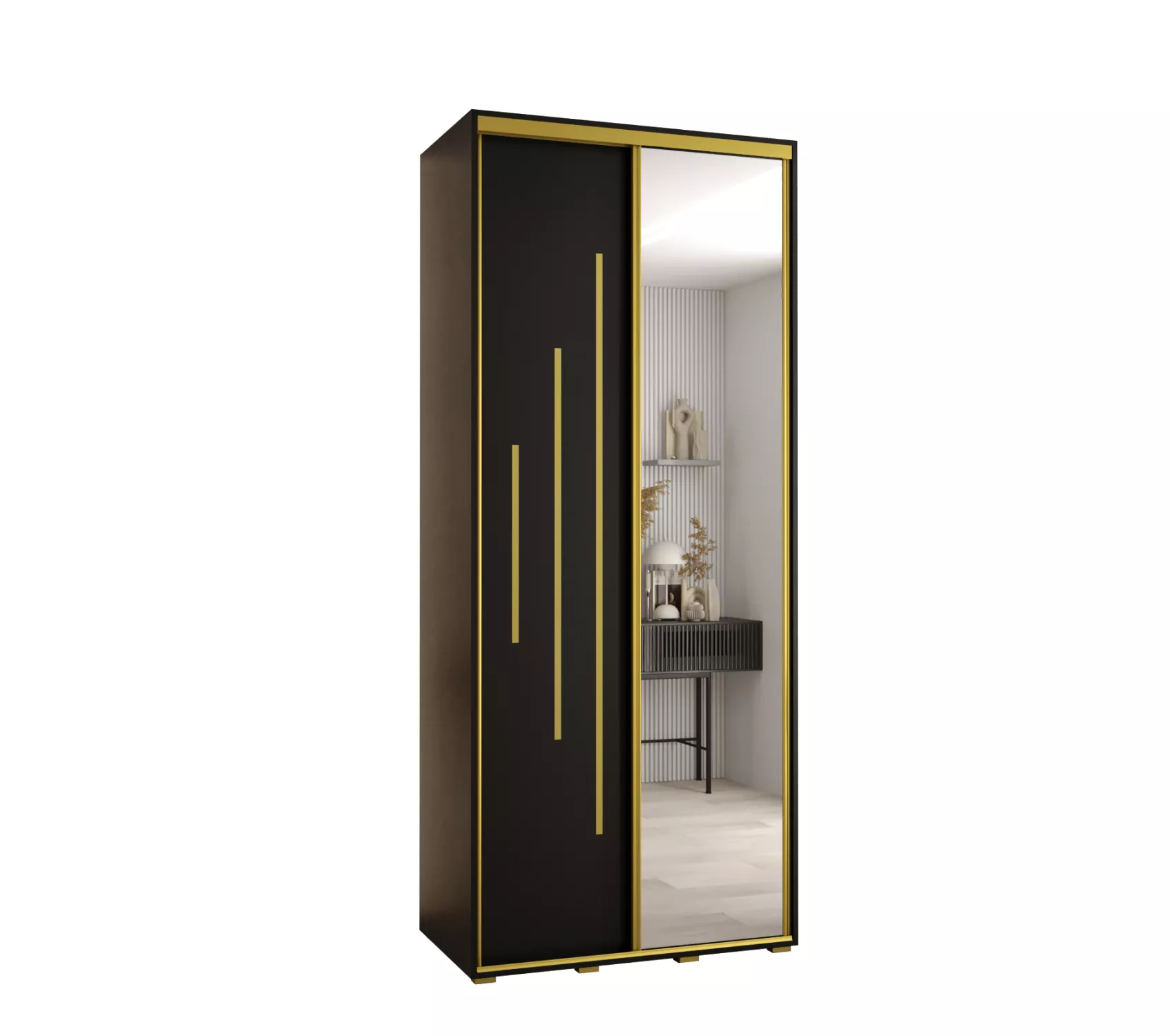 Šatní skříň YVONA 13 - 100/45 cm, černá / zlatá