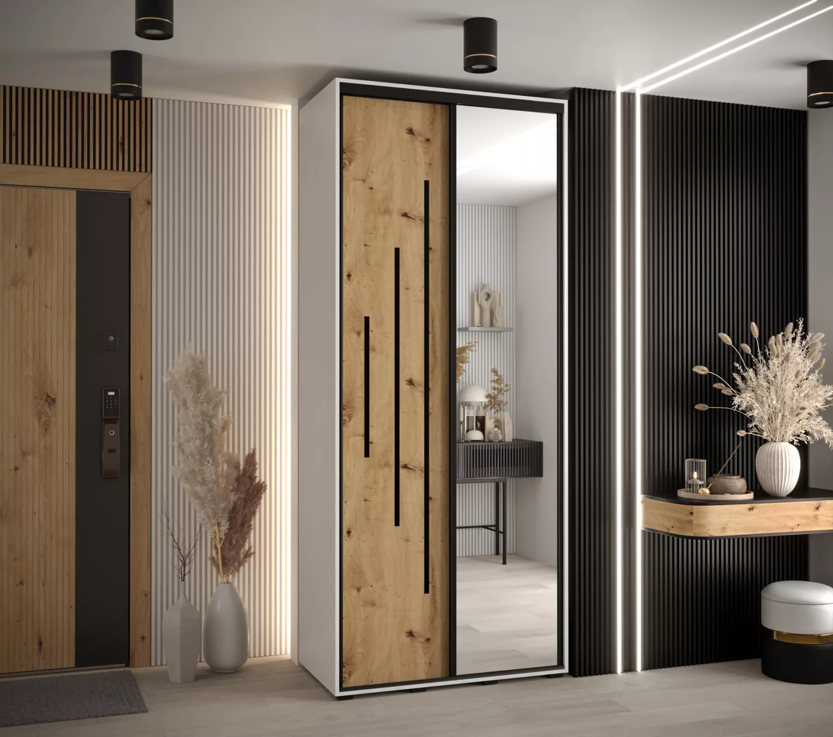 Šatní skříň YVONA 13 - 110/45 cm, bílá / dub artisan / černá