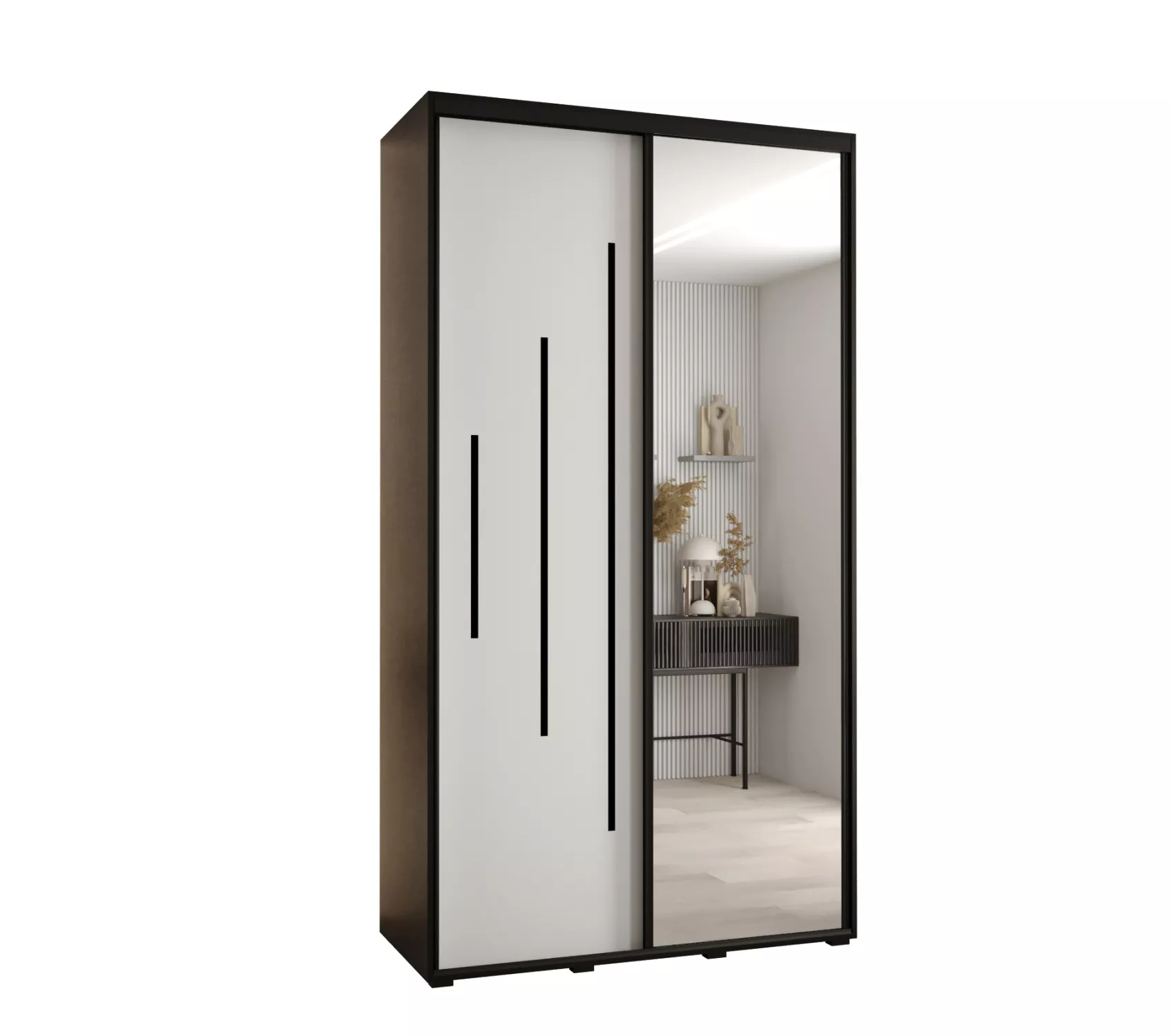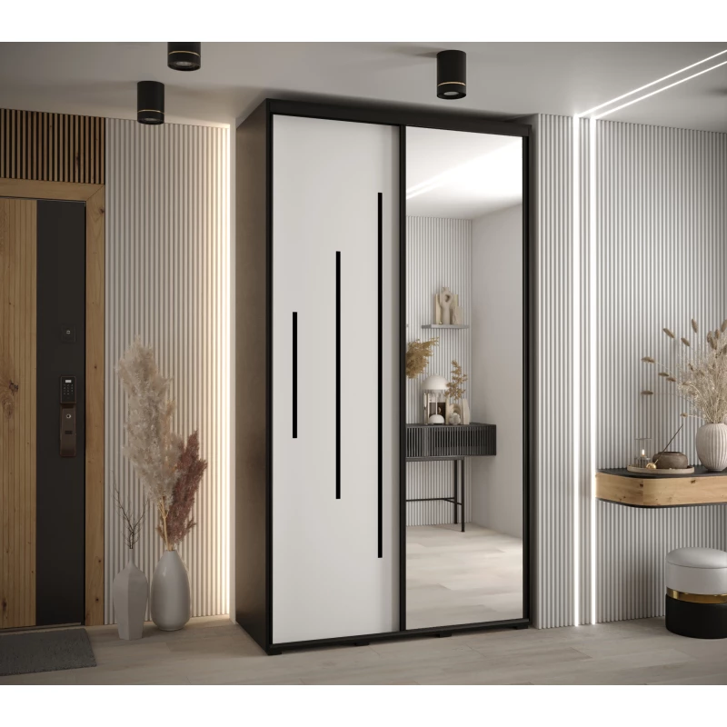 Šatní skříň YVONA 13 - 140/45 cm, černá / bílá / černá