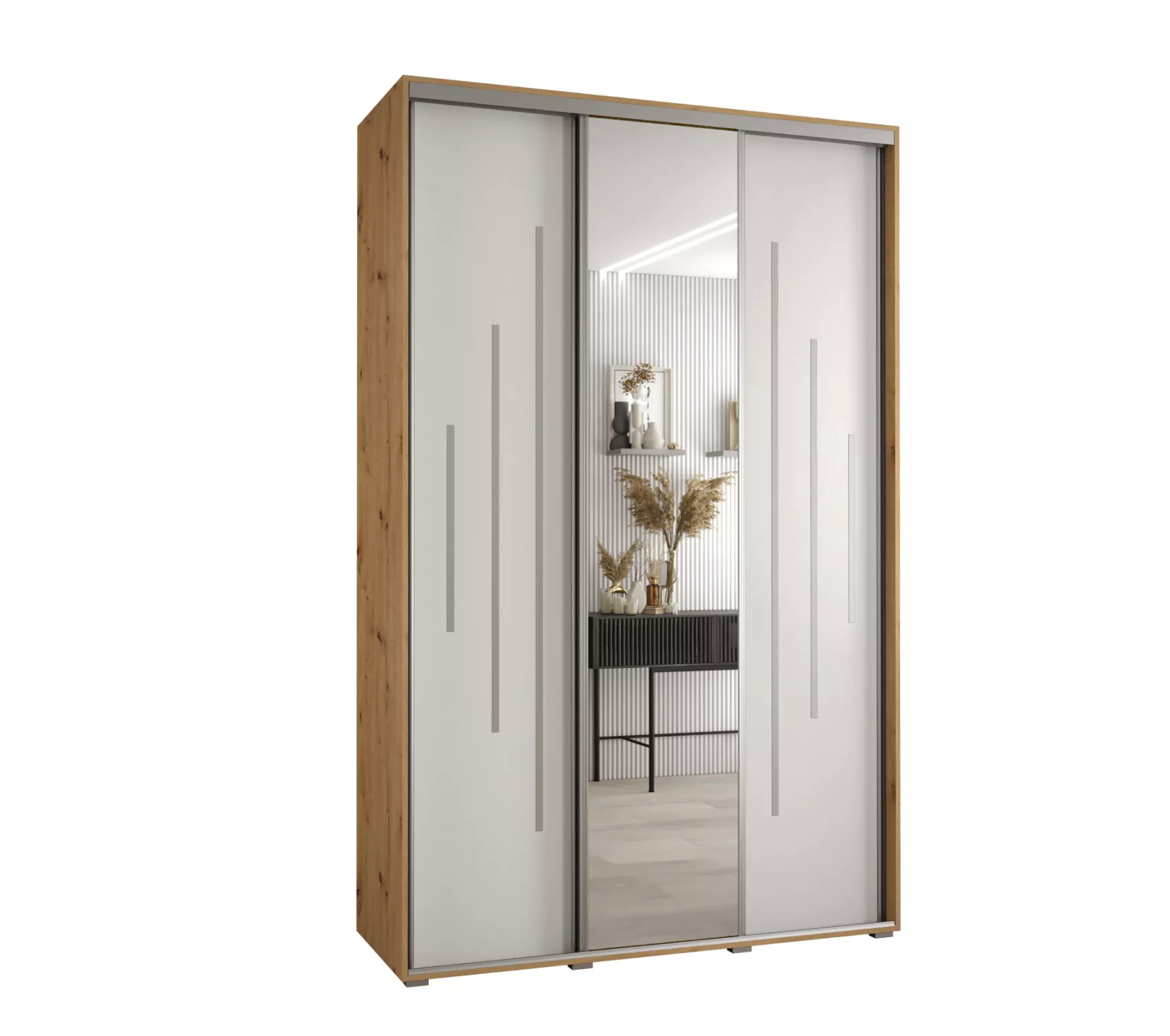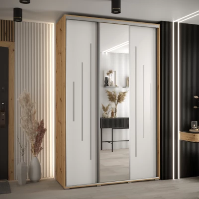 Šatní skříň YVONA 13 - 160/45 cm, dub artisan / bílá / stříbrná