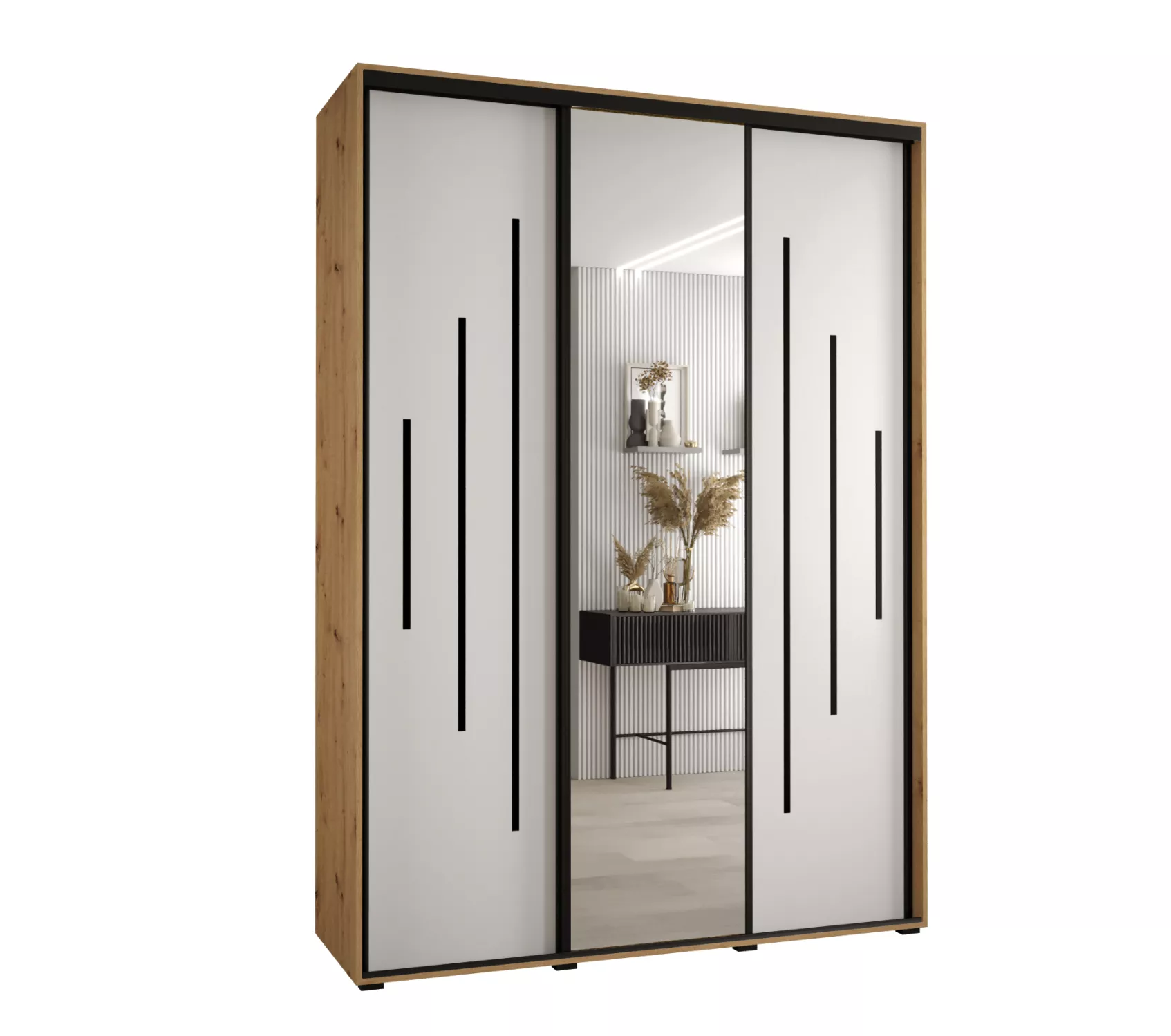 Šatní skříň YVONA 13 - 170/45 cm, dub artisan / bílá / černá